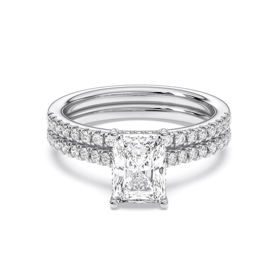 แหวนหมั้นเพชรแล็บโกรว์ทรงเรเดียนท์และทรงกลม น้ำหนัก 1.60 กะรัต F-G/VS (เพชรกลาง 1.00 กะรัต) พร้อมแหวนคู่ ทองคำแท้ 18K สำหรับทั้งชายและหญิง