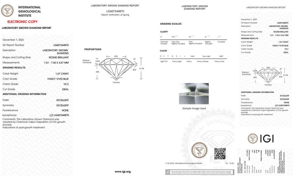 1.67กะรัตเพชร CVD รับรองว่าเป็นของแท้ VS2สีฟ้าสดใสแฟนซีสำหรับการทำเครื่องประดับแฟนซี