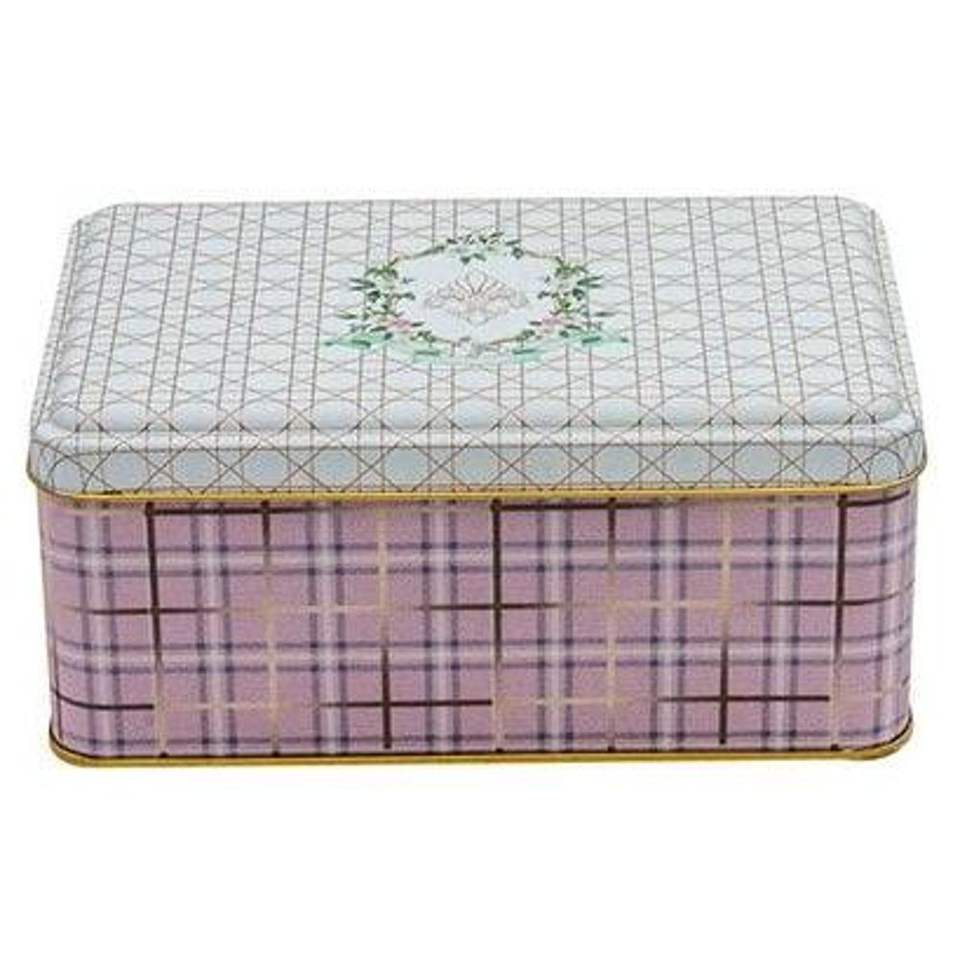 ตะกร้าโลหะทรงสี่เหลี่ยมลายสก๊อตสีดอกกุหลาบ1.6L 115x190x80mm-Metal