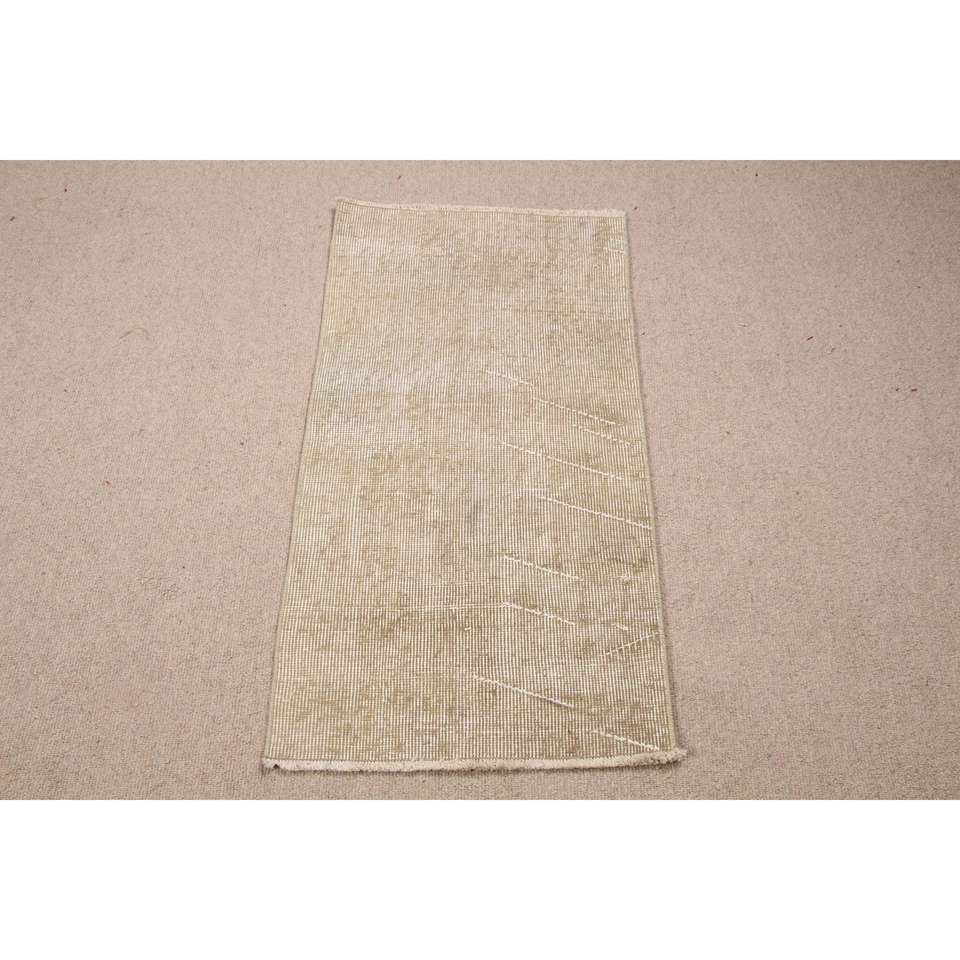 พรมตุรกีขนาด 1.6x3.2 ฟุต พรมขนาดเล็กสไตล์วินเทจ พรมขนสัตว์ลายดอกไม้สีเบจขาว