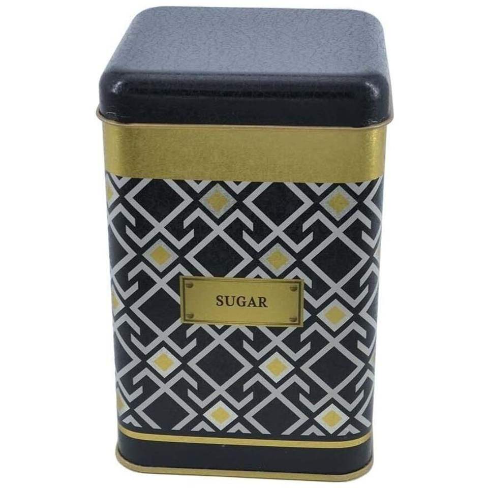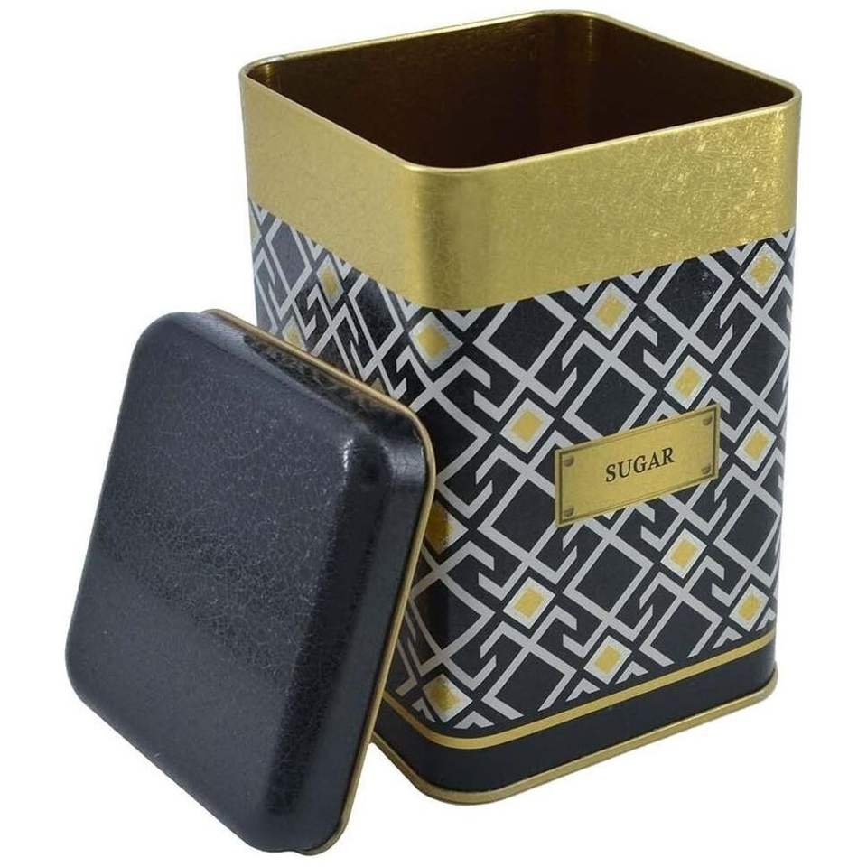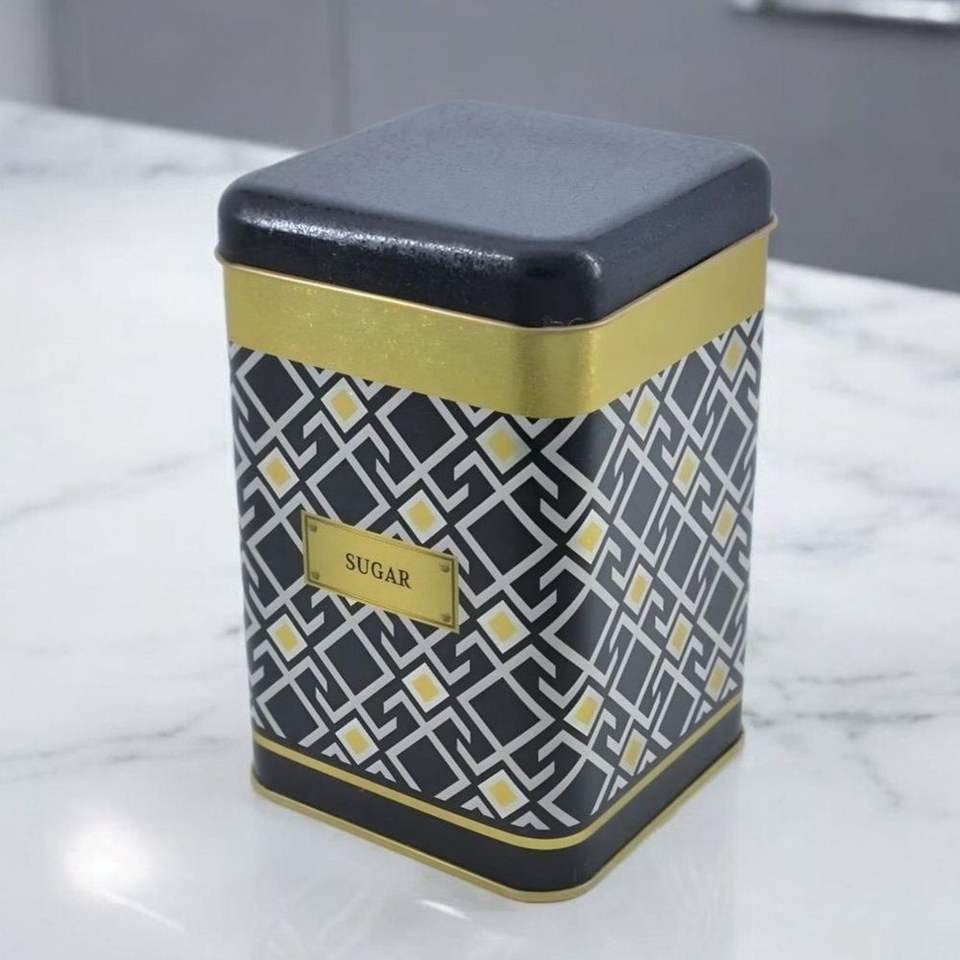 กล่องดีบุกสี่เหลี่ยมพื้นหลังสีดำขนาด105x105X160มม. ฝาลื่นออกแบบลวดลายเรขาคณิตลายนูนรีไซเคิลได้