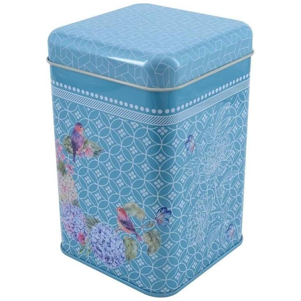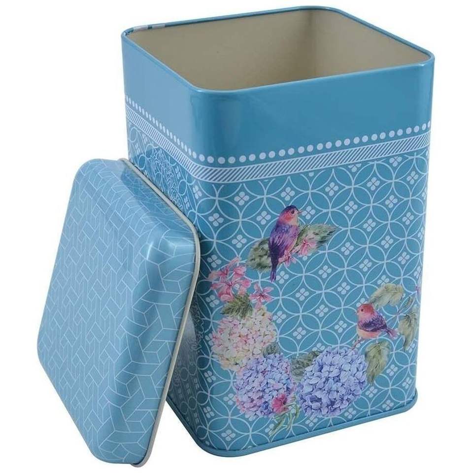 กล่องดีบุกทรงสี่เหลี่ยมขนาด1.7ลิตร105x105X160มม. กล่องโลหะรีไซเคิลได้สีฟ้าเรขาคณิตรูปนกรูปทรงเรขาคณิตลายดอกไม้