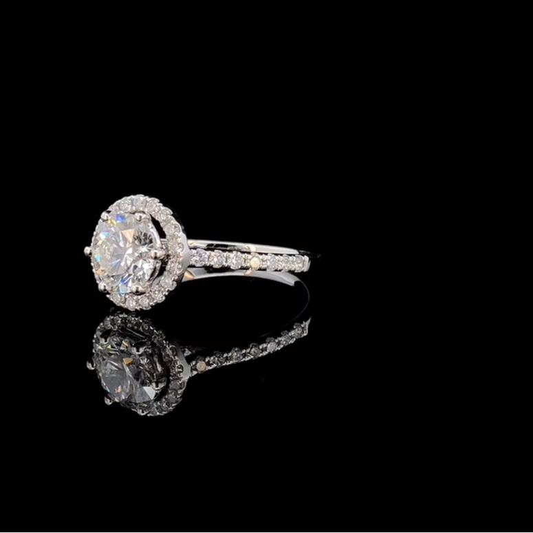 แหวนหมั้นเพชรทรงกลม 1.70 กะรัต ผลิตในห้องปฏิบัติการ ตัวเรือนทองคำแท้ 14K ประดับเพชรแบบ Halo