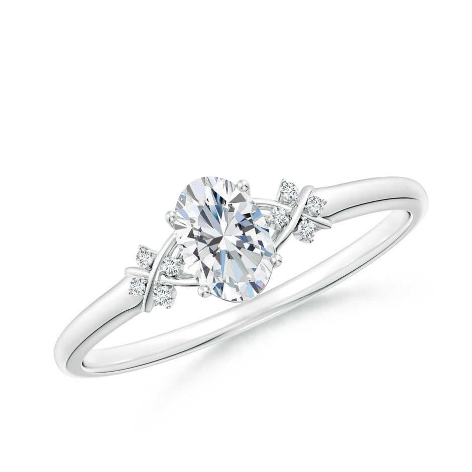 แหวนหมั้นเพชรทรงรี 1.70 กะรัต เพชรเลี้ยงในห้องปฏิบัติการ ประดับเพชรแบบปาเว่ ดีไซน์บาร์ดอต สเกลลอป พร้อมเพชร 5 เม็ด ตัวเรือนทองคำขาว 14K