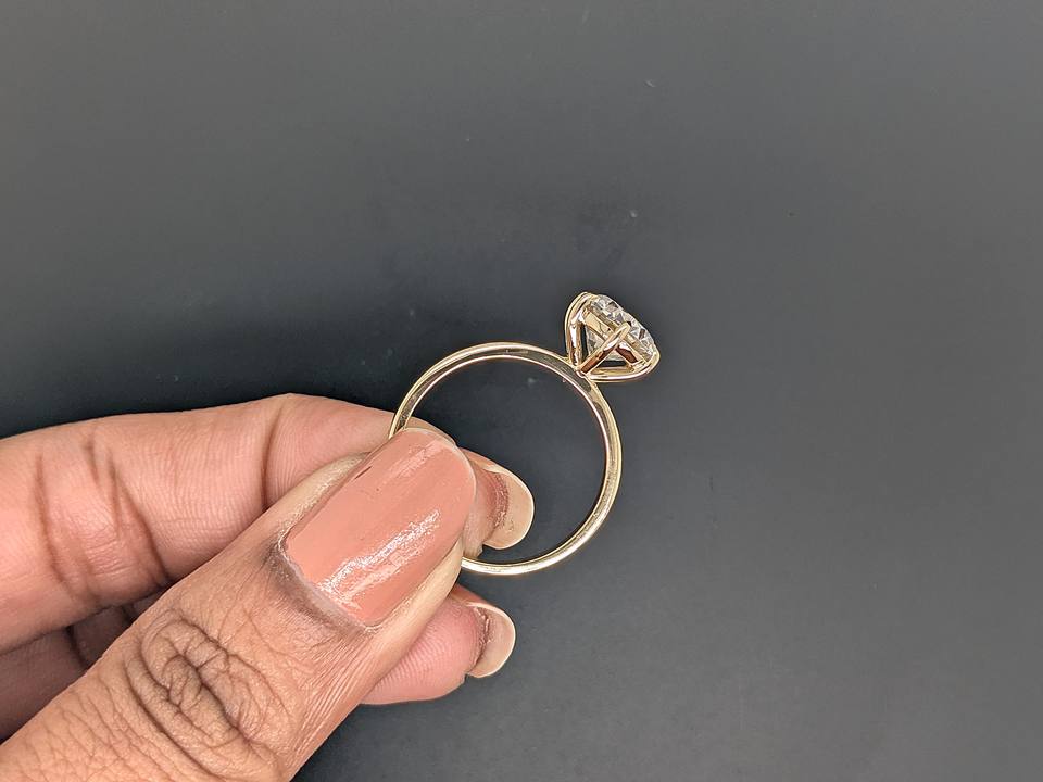 แหวนเพชรทรงกลม 1.75 กะรัต เพชรเพาะเลี้ยงสำหรับผู้หญิง แหวนแต่งงานเพชรเม็ดเดี่ยว แหวนทองคำแท้ 14K สีเหลือง