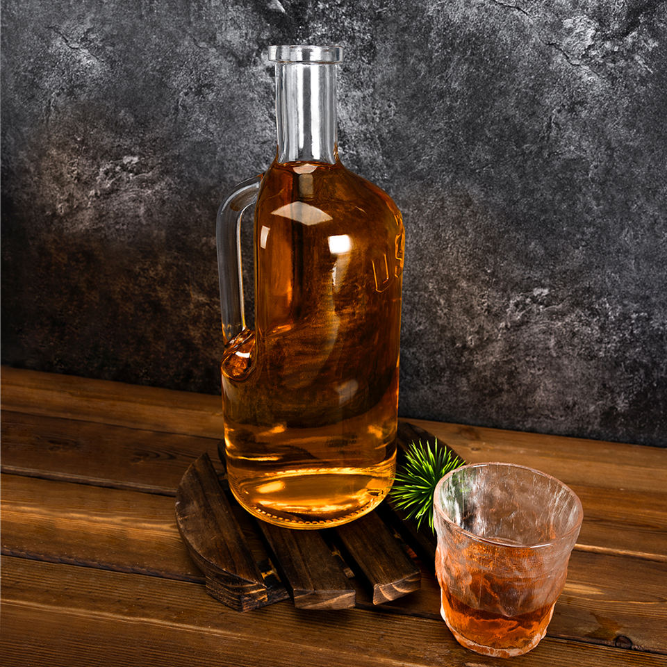 ขวดเหล้าแก้วฟลินท์บูร์บงขนาด1.75ลิตรพร้อมที่จับ