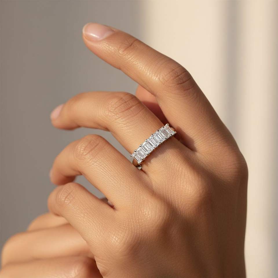 แหวนวงแหวนเจ็ดเม็ดทรงเหลี่ยมมรกต 1.75 กะรัต