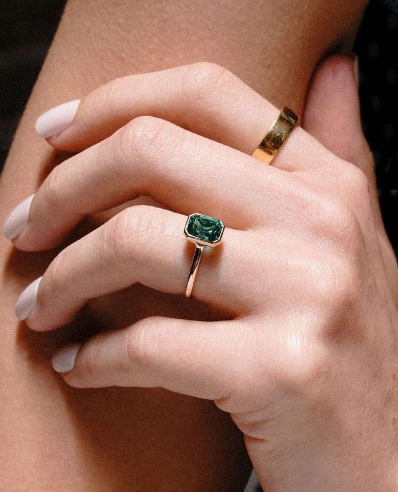 1.77 caratt แหวนหมั้นเพชรมอยส์ซาไนต์สีทอง18K ตัวเรือนสีเหลืองดีไซน์เพรียวบางและไร้กาลเวลาสำหรับผู้หญิง