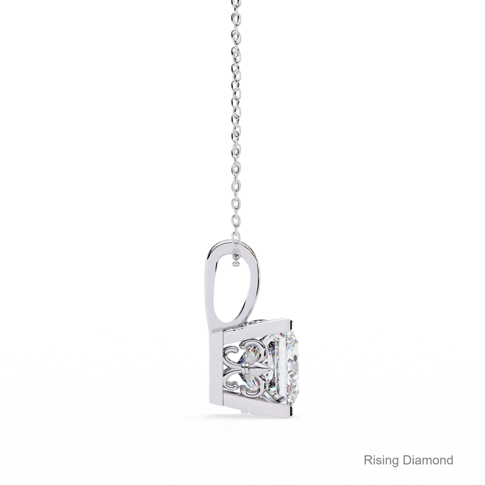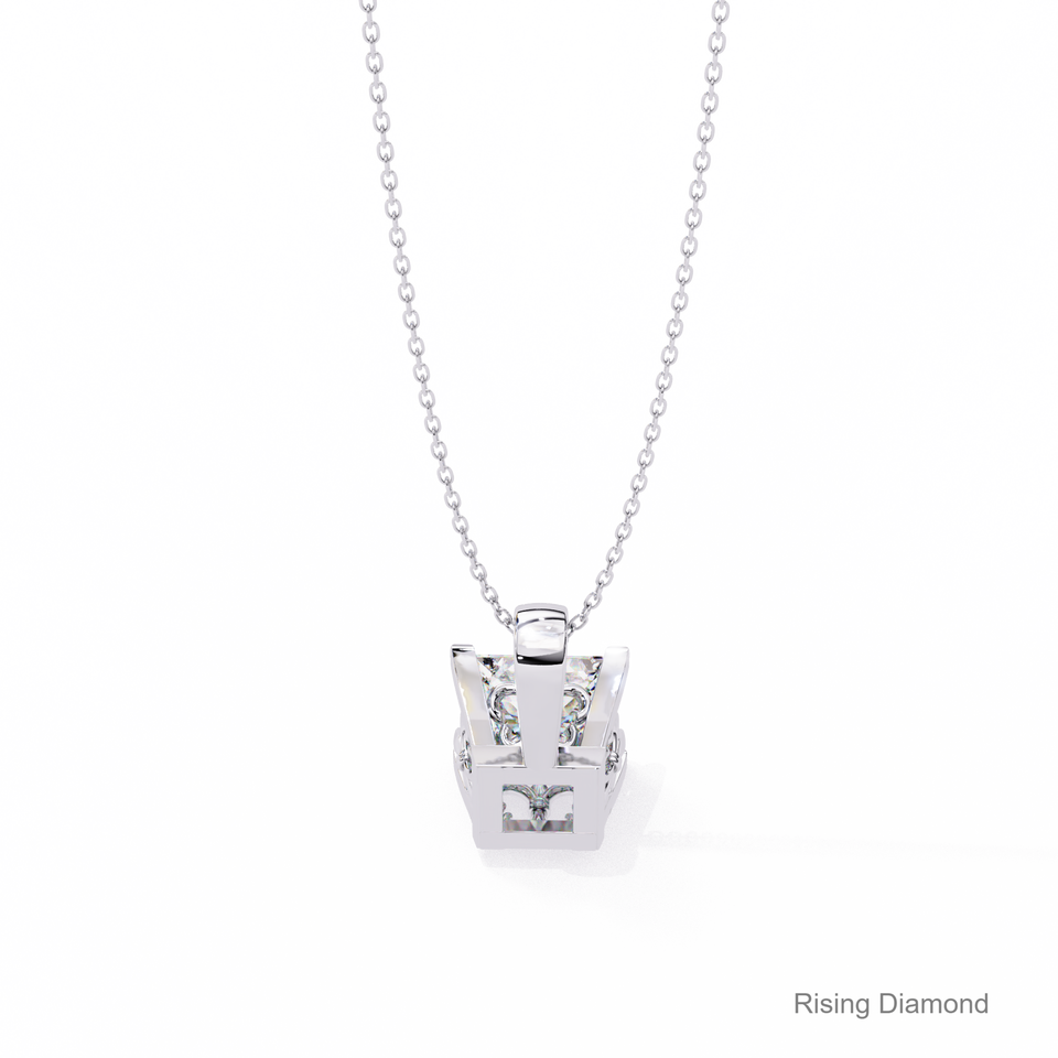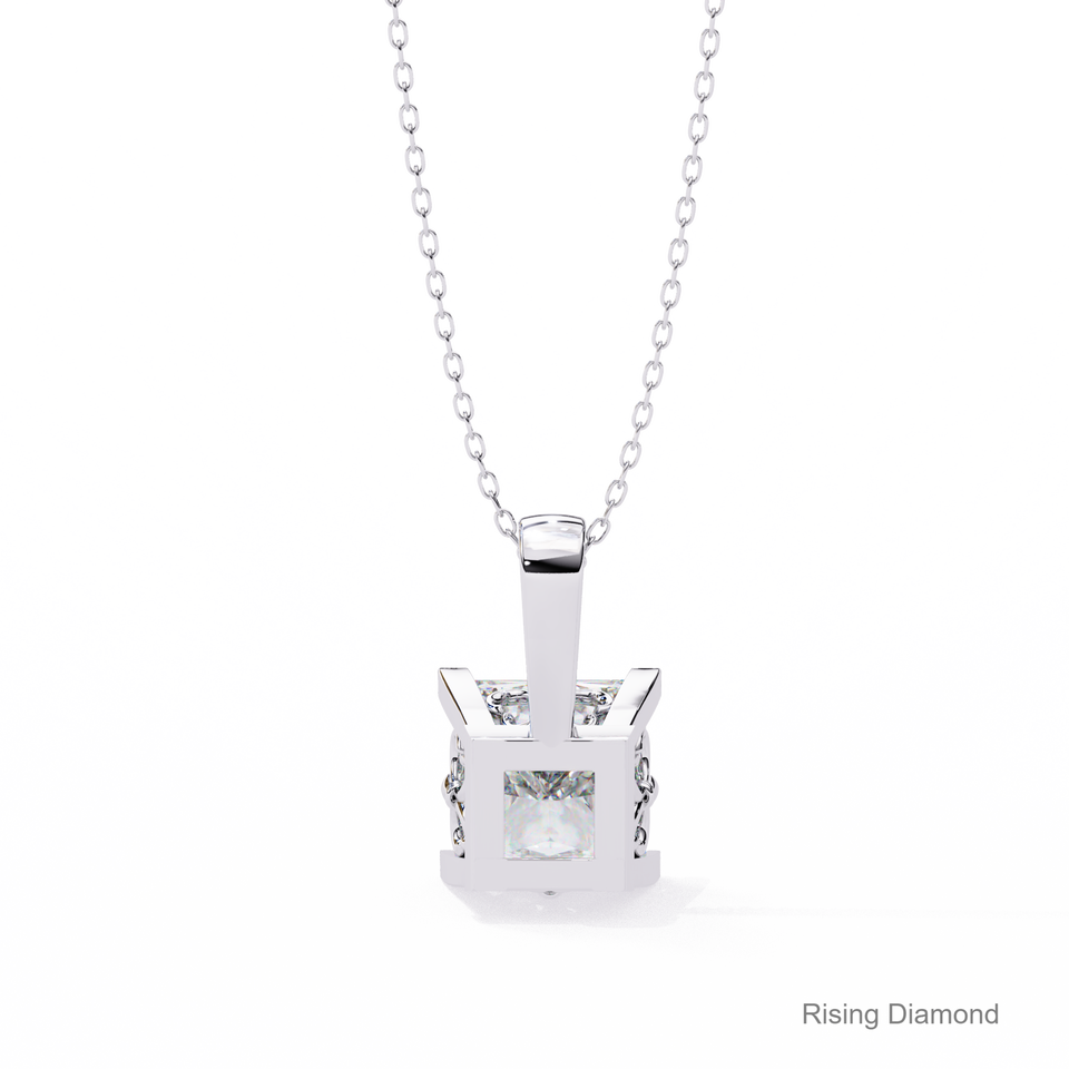 จี้เพชรทรงปรินเซสคัท 1.8 กะรัต เพชรเลี้ยงในห้องปฏิบัติการ ฝังแบบหนามเตย ทองคำแท้ 14K ความใส VS สีแฟนซี F รับรองโดย IGI