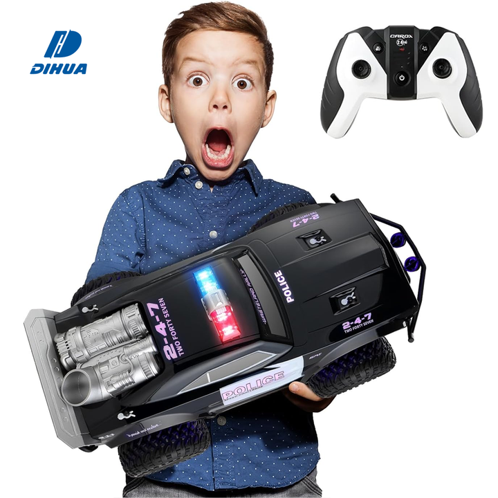 รถตำรวจบังคับวิทยุขนาด 1:8 พร้อมไฟและเสียงไซเรน สำหรับเด็กผู้ชาย รถตำรวจเด็ก ทนทาน รถบรรทุกตำรวจบังคับวิทยุ สำหรับการผจญภัยกลางแจ้ง