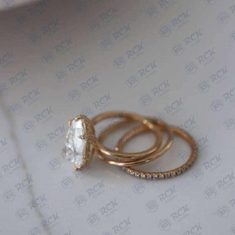ชุดแหวนเงินประดับเพชรโมอิสสำหรับผู้หญิงชุดลูกแพร์แบบทรีโอ1.80 CTW สำหรับผู้หญิง