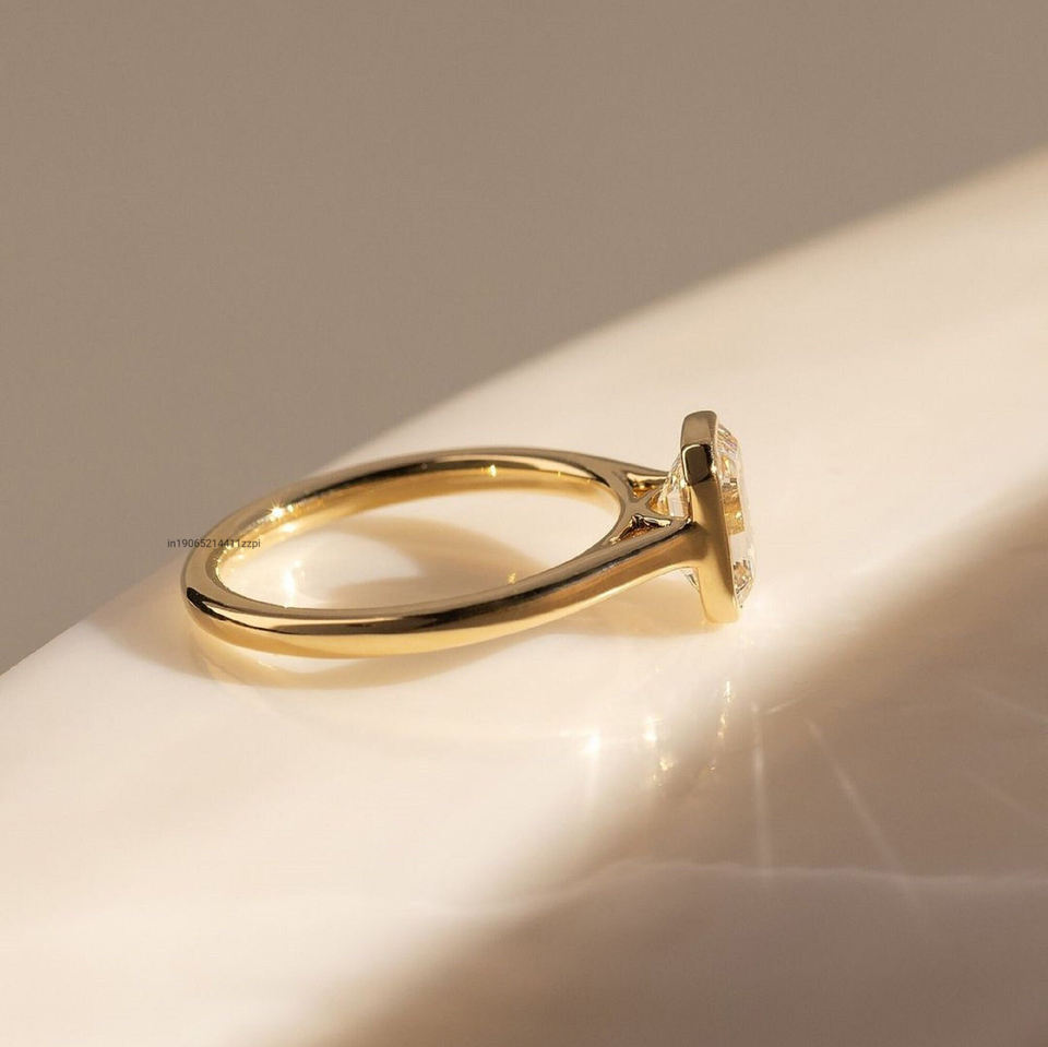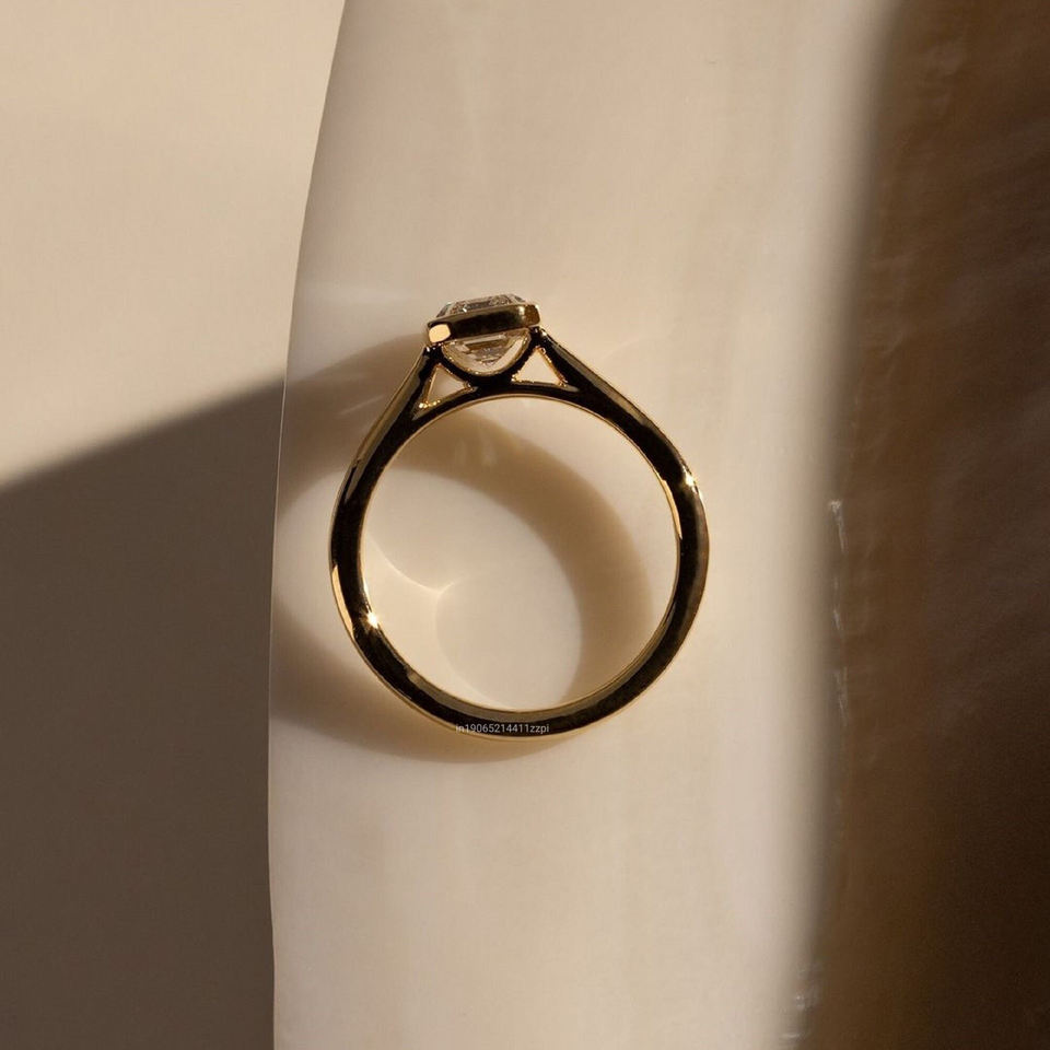 แหวนเพชรโมอิสมรกต1.80กะรัตที่มาพร้อมกับตัวเรือนที่สะอาดและสายคาดมหาวิหารแบบคลาสสิกที่สมบูรณ์แบบสำหรับเจ้าสาว