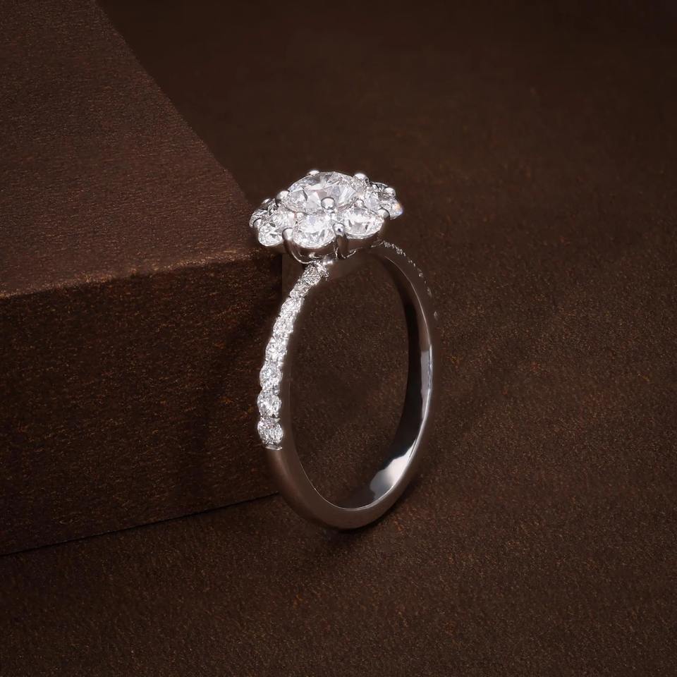แหวนหมั้นเพชรเพาะเลี้ยงในห้องปฏิบัติการ 1.89 กะรัต รูปทรงดอกไม้ แหวนหมั้นทรงกลม ระดับความสะอาด F VVS1 VVS2 เพชรแท้รับรอง แหวนเพชรเม็ดเดี่ยว