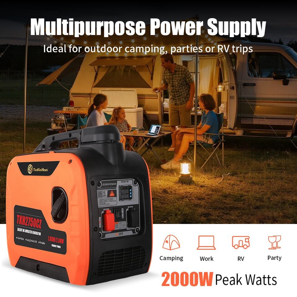 เครื่องกำเนิดไฟฟ้าอินเวอร์เตอร์แบบพกพา 1.8 กิโลวัตต์ เงียบ 24 โวลต์ ดีซี ใช้เชื้อเพลิงเบนซิน สตาร์ทอัตโนมัติ ความจุถังน้ำมัน 6.5 ลิตร เป็นมิตรกับสิ่งแวดล้อม สำหรับรถบ้าน รถมอเตอร์โฮม รถบรรทุก รถยนต์ไฟฟ้า