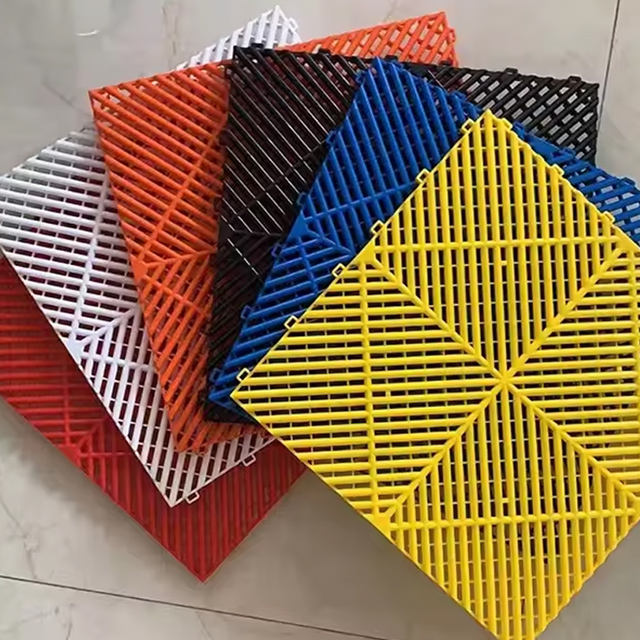 แผ่นตะแกรงระบายน้ำกันลื่นขนาด1.8ซม. 4นิ้วแผ่นปูพื้นโรงรถและลงรายละเอียดในกล่องกระดาษอุตสาหกรรมกันลื่นในร่ม