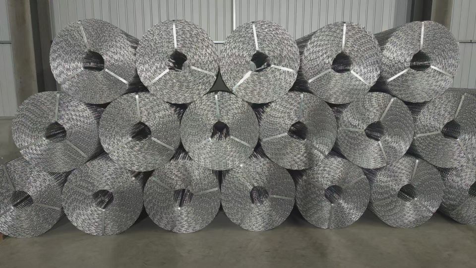 ม้วนตาข่ายลวดชุบสังกะสีแบบเกลียวสามชั้นขนาด50/3มม. เส้นผ่านศูนย์กลาง0.8มม. ความสูง200ซม. ทอด้วยเทคนิคการถักทอแบบทอลายทแยง
