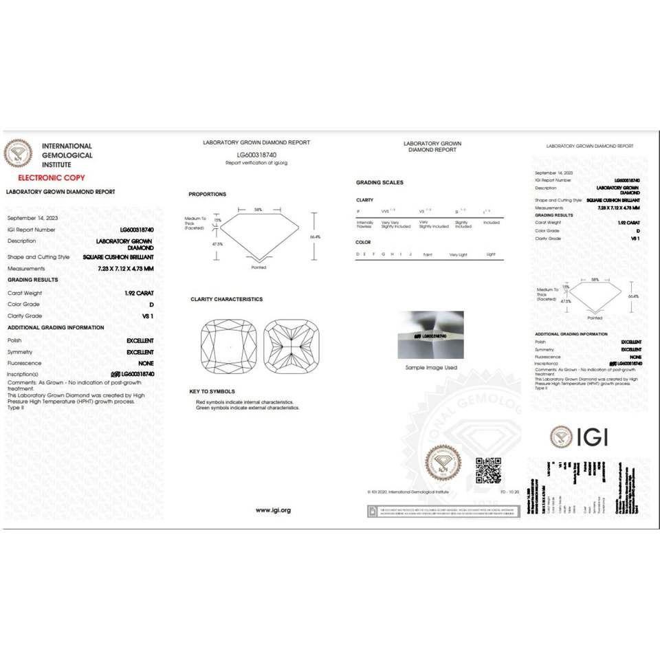 เบาะ1.92ct เพชรที่ปลูกโดยใช้เพชรที่มีการรับรอง IGI D สี VS1ความชัดเจนในห้องปฏิบัติการ