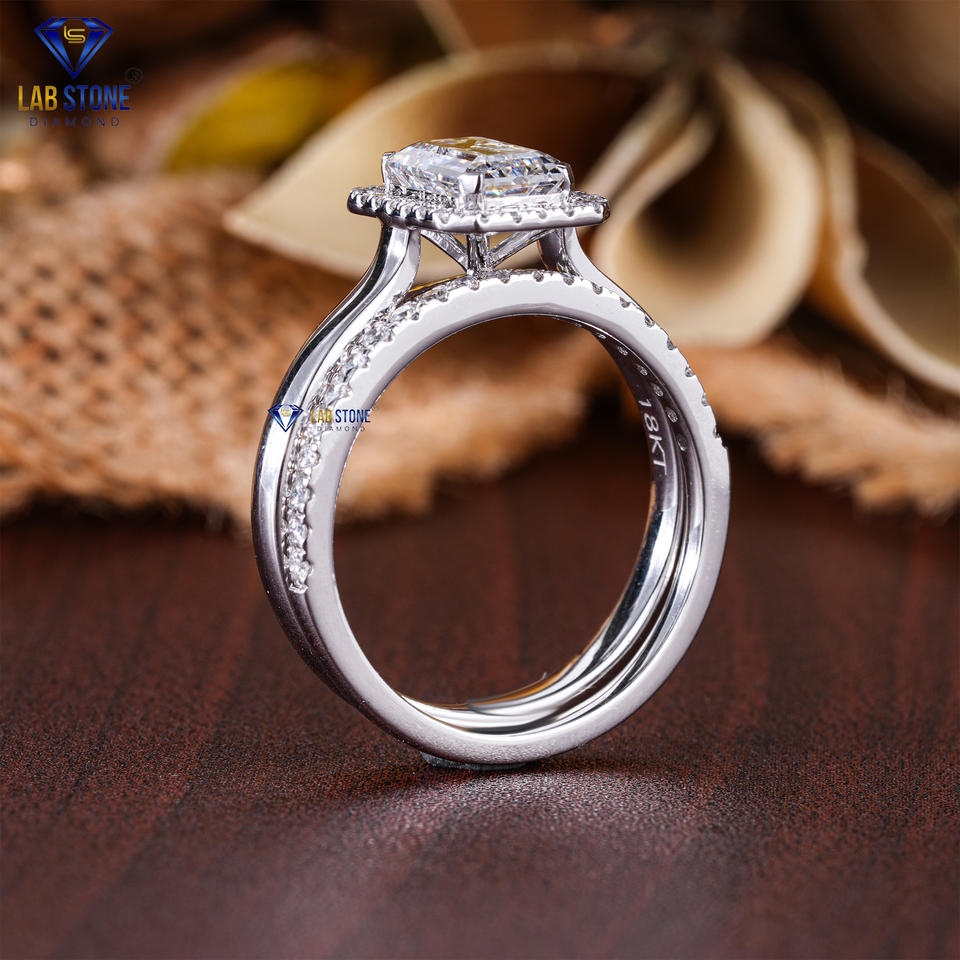 1.93 TDW มรกตและเพชรตัดกลมแหวนทองคําขาวโดย Lab-Stone / เงางามด้วยเพชร / สี EF-VS