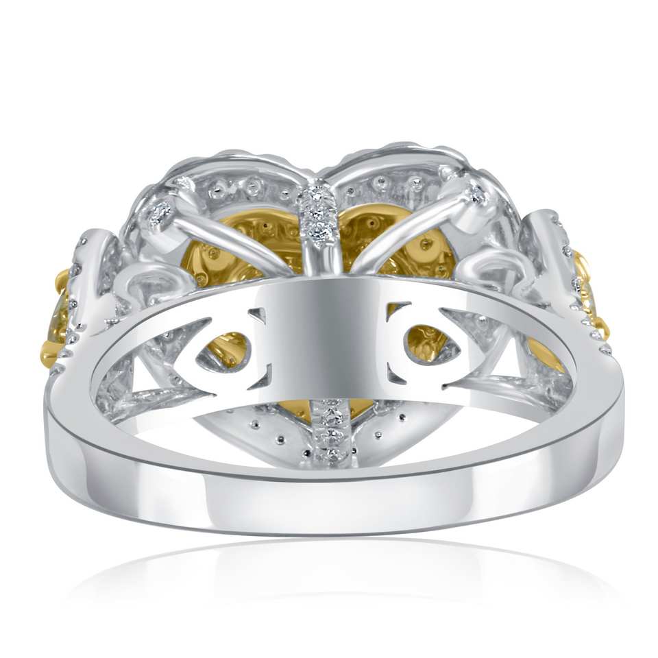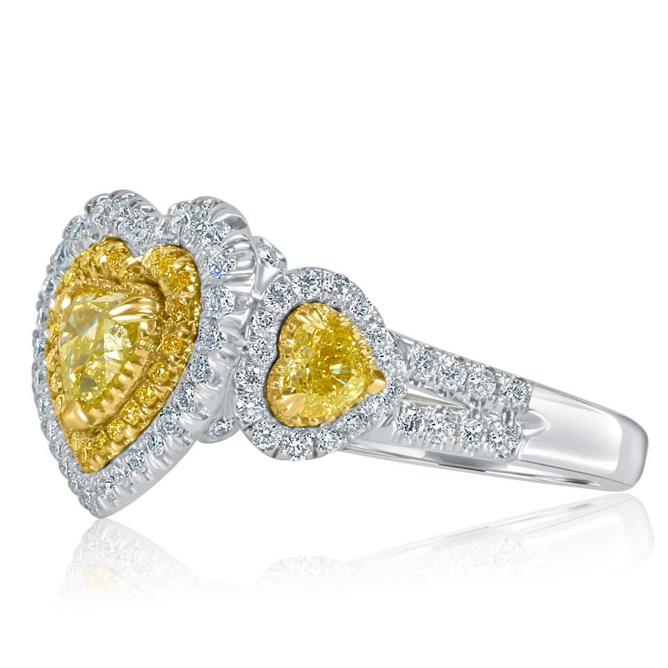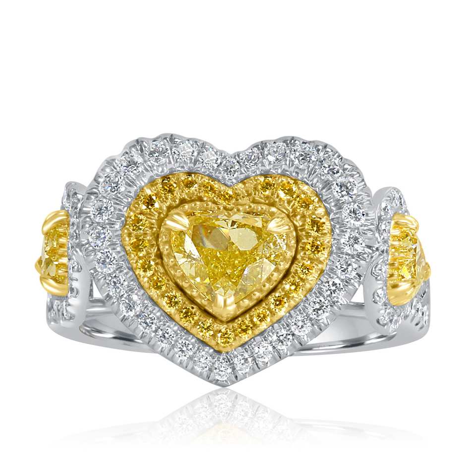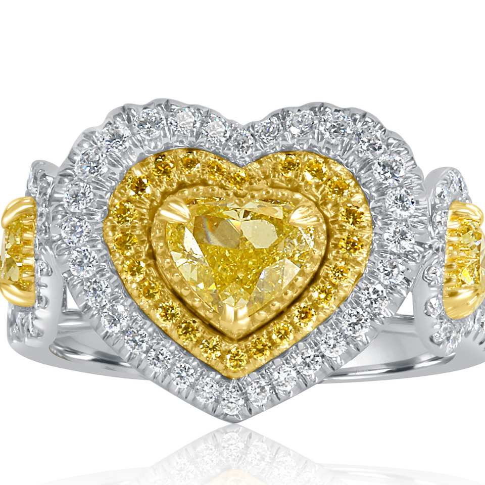 แหวนหมั้นเพชรที่ได้รับการรับรองจาก Gia 1.95 CT แหวนเพชรสีเหลืองแฟนซีแหวนขอแต่งงานทองคำขาว18K แหวนเพชรรูปหัวใจสำหรับผู้หญิง
