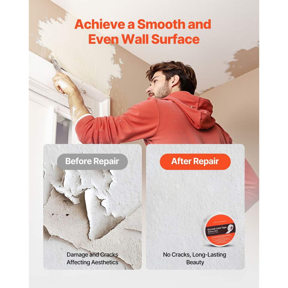 เทปติดผนังไฟเบอร์กลาสแบบมีกาวในตัว ขนาด 1.97 นิ้ว กว้าง x 147.64 ฟุต ยาว 36 ม้วน ใช้งานง่ายสำหรับซ่อมแซมผนัง