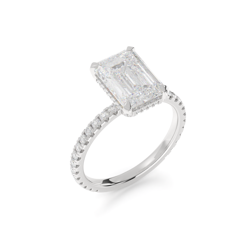 แหวนหมั้นทองคำขาว 14K น้ำหนัก 1.98 กะรัต รูปทรงมรกต ประดับด้วยวงแหวนซ่อนแบบ Halo ดีไซน์หรูหราสำหรับเจ้าสาว ทำด้วยมืออย่างประณีต