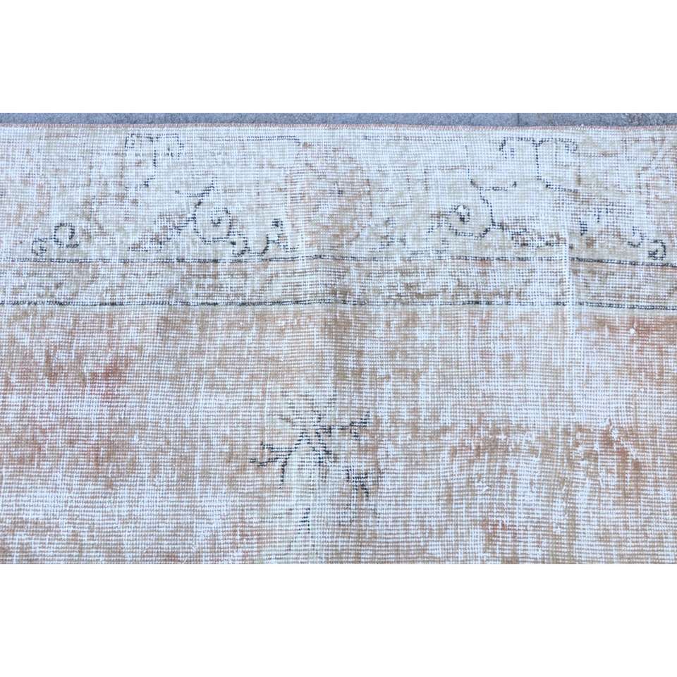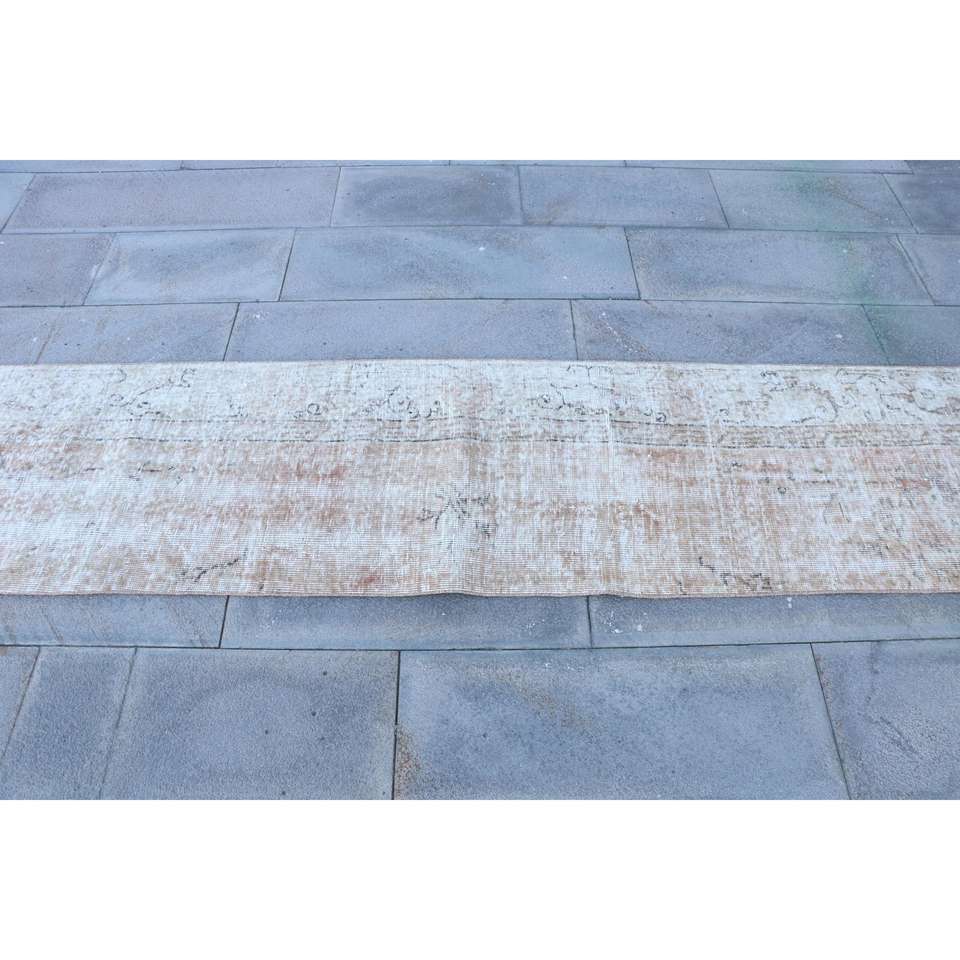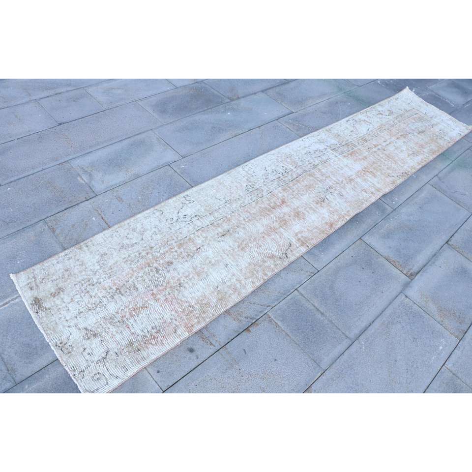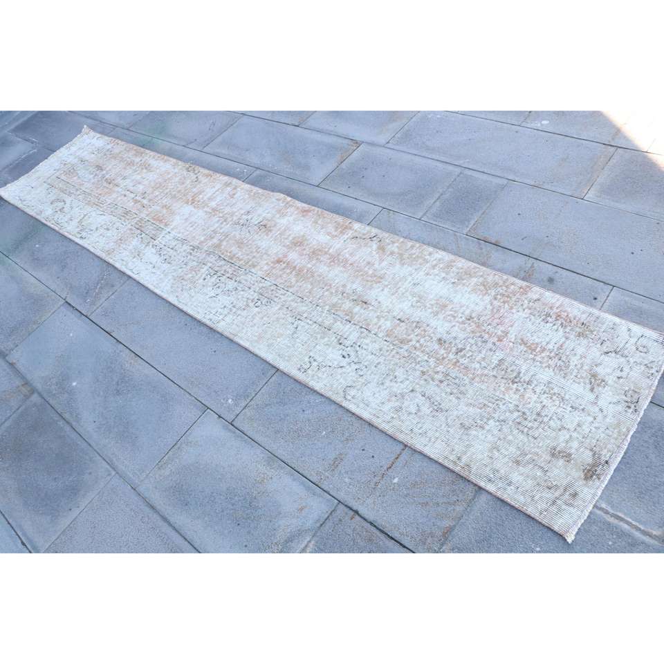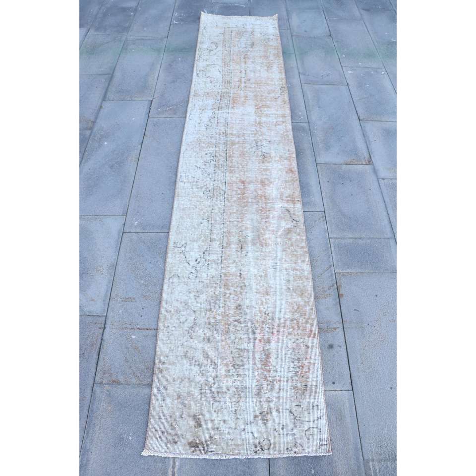พรมวิ่งสไตล์ตุรกี ขนาด 1.9x9.6 ฟุต สีขาวน้ำตาลลายตารางวินเทจ ทำจากขนสัตว์