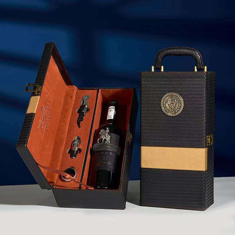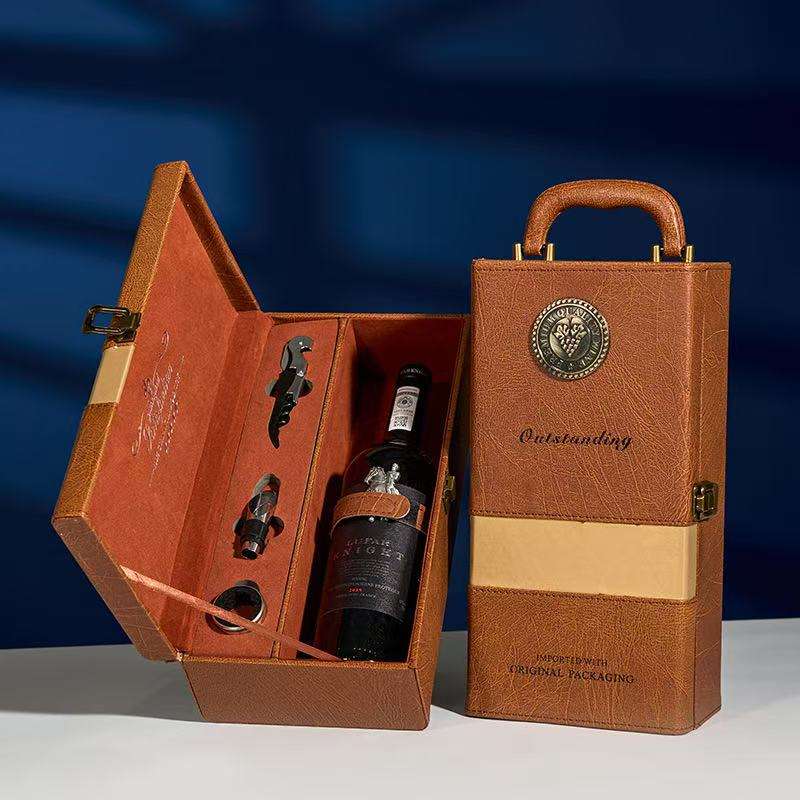 กล่องหนังใส่ไวน์ 1 ขวด กล่องของขวัญไวน์ขายส่ง บรรจุภัณฑ์กล่องไวน์ และโรงงานผลิตกล่องส่งไวน์แบบกำหนดเอง ขายส่ง