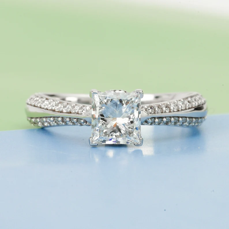 แหวนเพชรแล็บ 1 กะรัต สำหรับผู้หญิง ระดับ E F VS เพชรทรงเหลี่ยมมรกต สร้างในห้องแล็บ พร้อมใบรับรอง แหวนแต่งงานสุดหรู