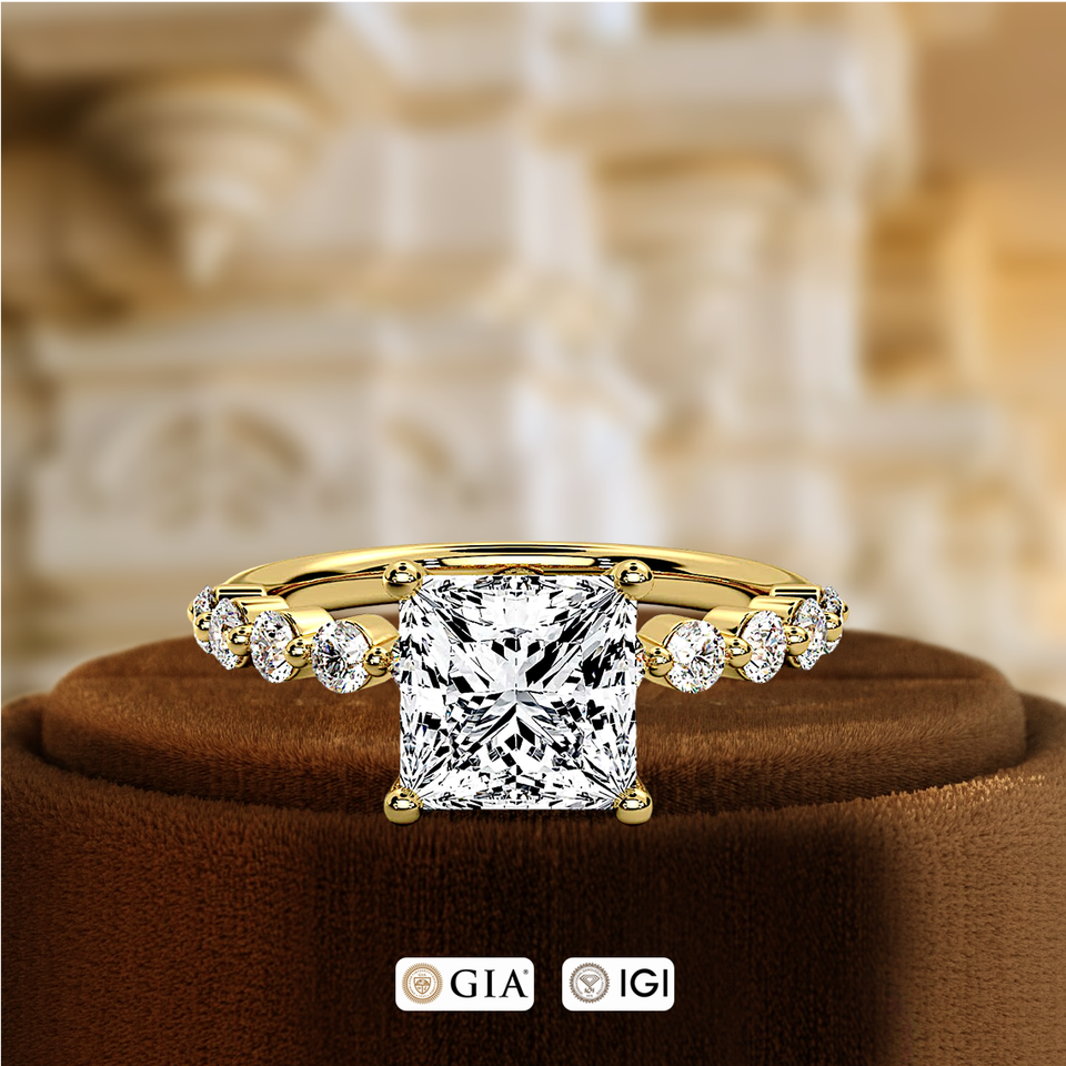 แหวนแต่งงานเพชรทรงเจ้าหญิง 1 กะรัต รับรองโดย IGI แหวนของขวัญสำหรับเธอ ทองคำแท้ 14K ประดับเพชรเพาะเลี้ยงในห้องปฏิบัติการ