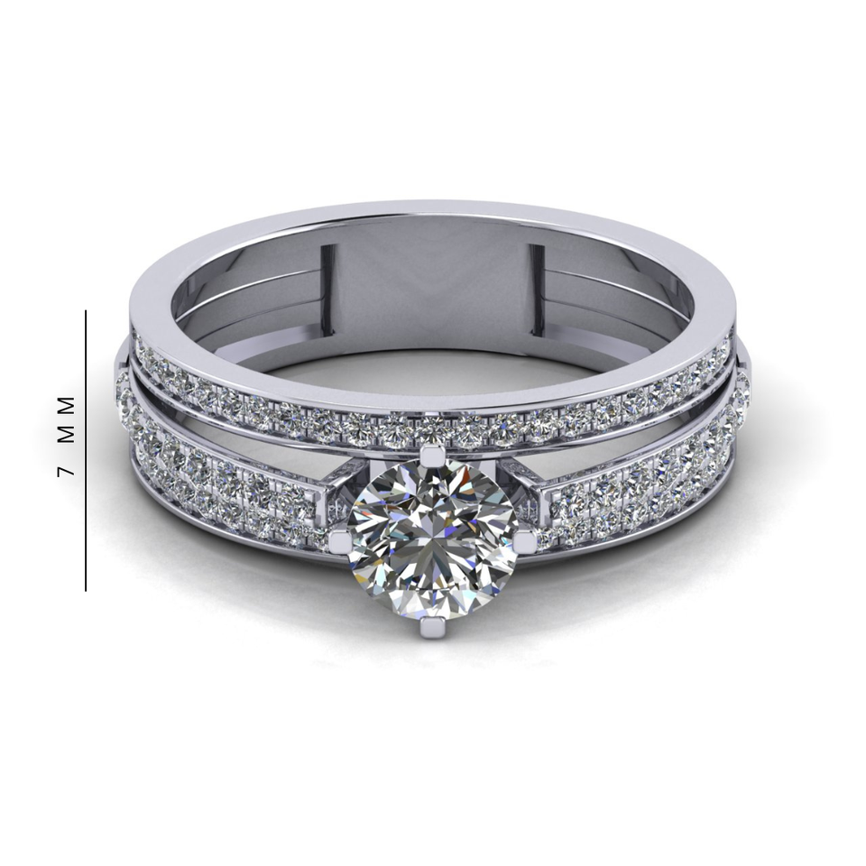 1 CT VVS Moissanite Diamond Studded 3-Line Pav Setting Original Sterling Silver Ladies Wedding/Party Ring