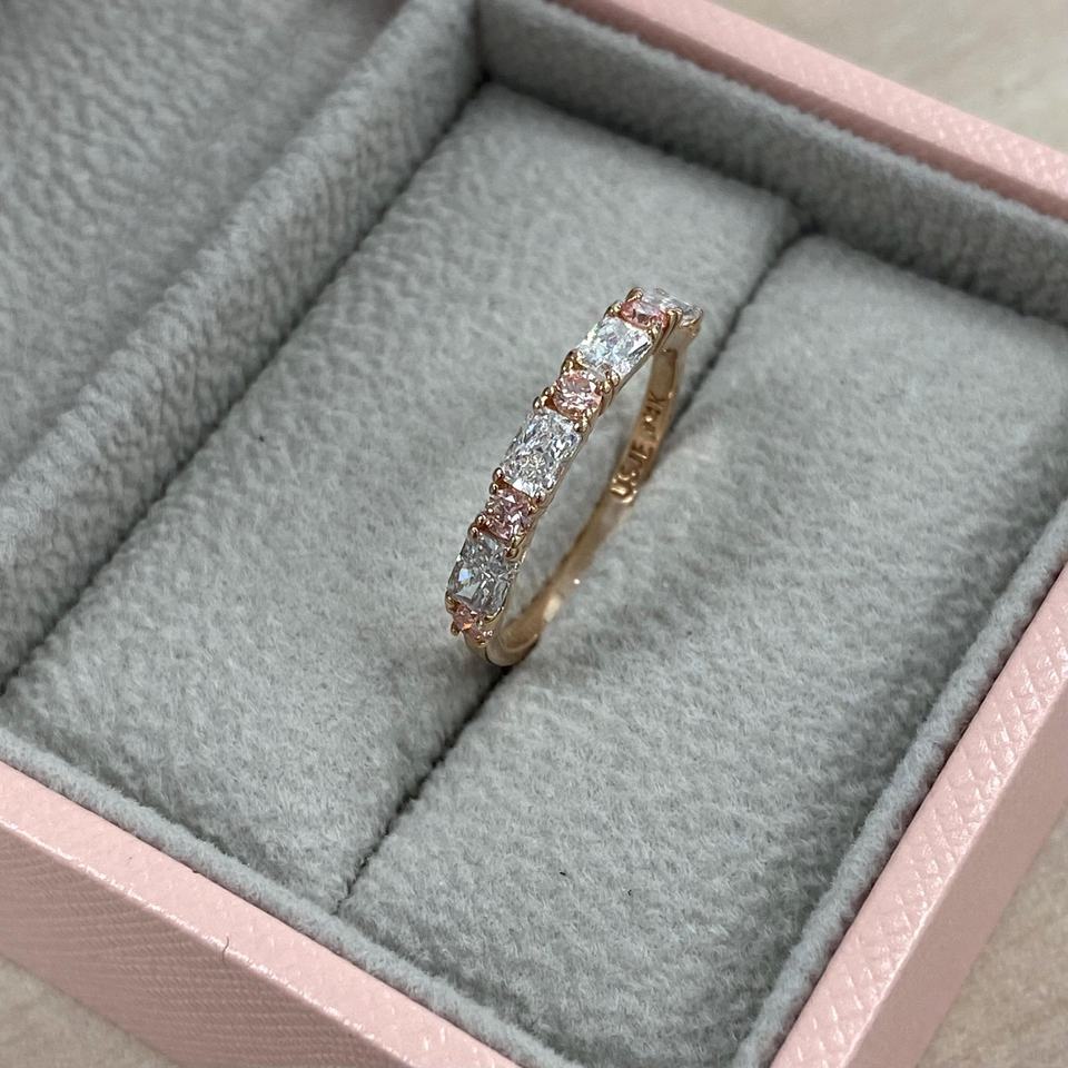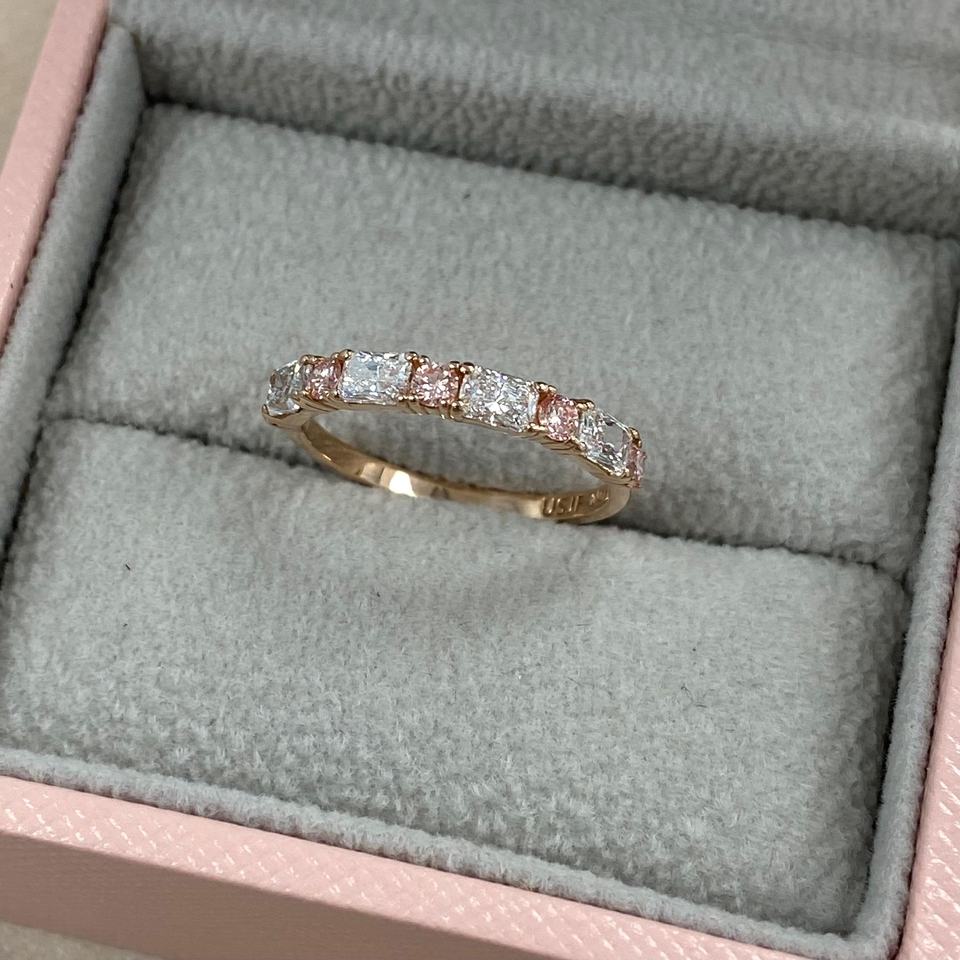 แหวนเพชรสีชมพู1กะรัตสลับรอบและสดใสสำหรับงานแต่งงานแหวนครบรอบแต่งงานแหวนเรียงซ้อน14K ของขวัญโรสโกลด์