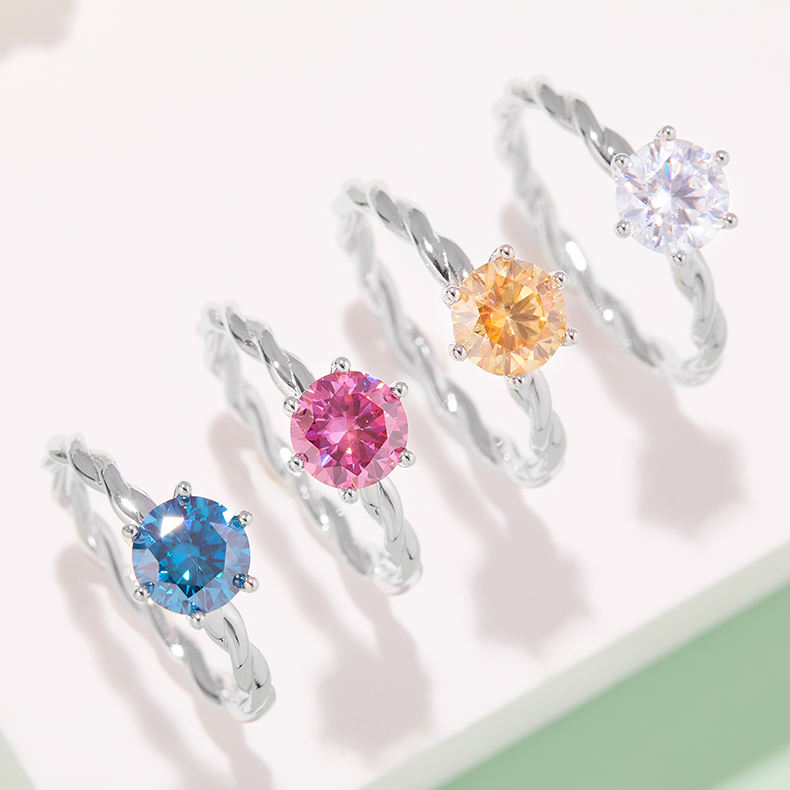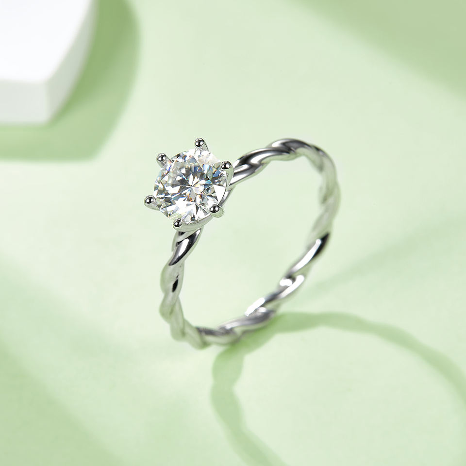 แหวนแต่งงานแบบหนีบ 1 กะรัต เกรด D โมอิสซาไนต์ทรงตรง ดีไซน์กิ่งไม้ ตัวเรือนเงินแท้ 925 ชุบแพลตตินัม