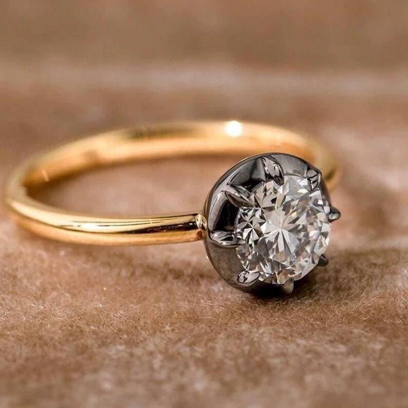 แหวนหมั้นเพชรซิคอน CVD 1 กะรัต รับรองโดย IGI เงินแท้ 925 ชุบทอง 14K เครื่องประดับเจ้าสาว