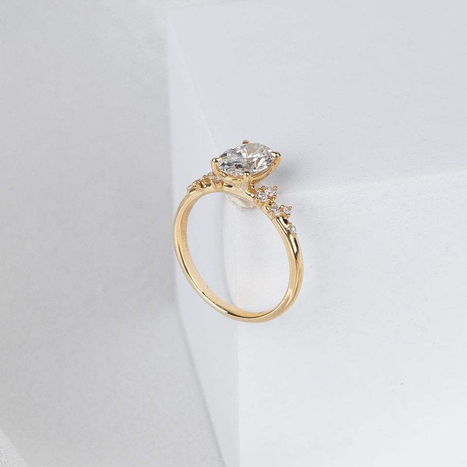 แหวนหมั้นเพชรทรงรี 1 กะรัต ดีไซน์มินิมอล ทองคำขาว 14K รับรองโดย IGI แบบฝังหนามเตย สำหรับผู้หญิง