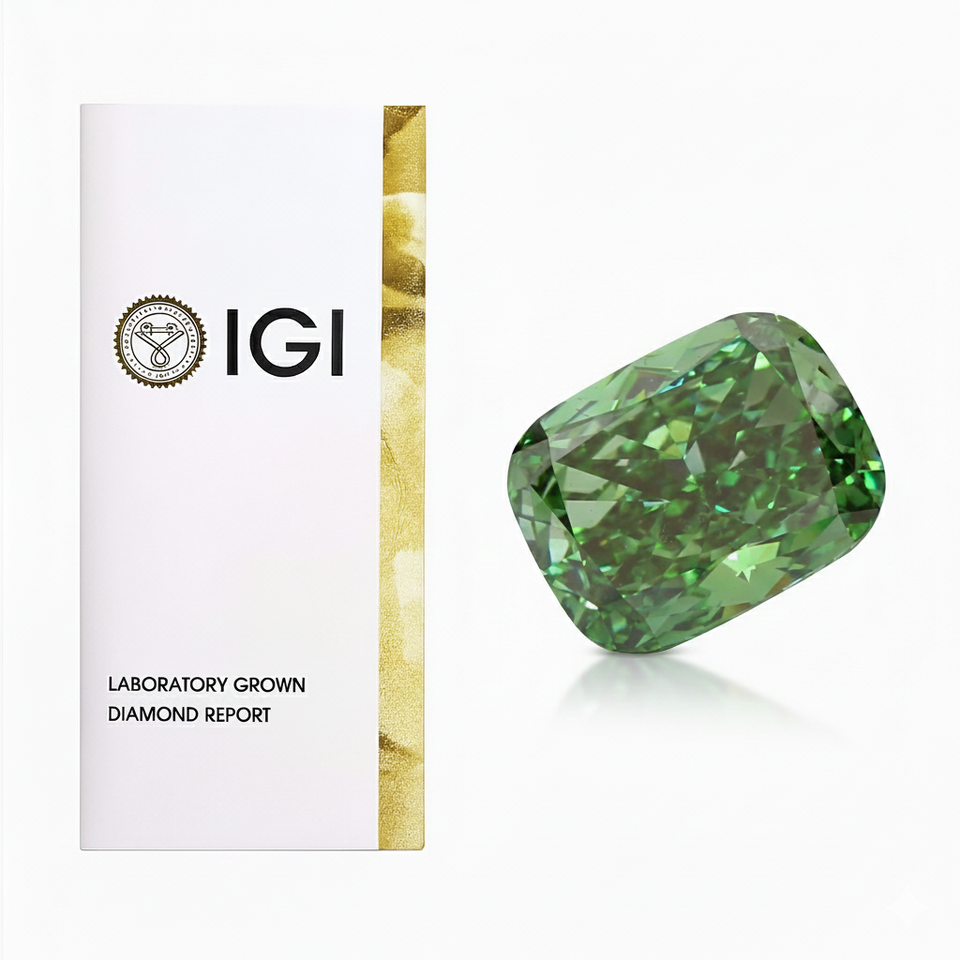 เพชรแล็บโกรน 1 กะรัต ระดับความสะอาด VVS สีเขียวอมชมพูเข้ม รูปทรงแฟนซี ได้รับการรับรองจาก IGI ผลิตด้วยวิธี CVD ยั่งยืน เหมาะสำหรับเครื่องประดับหรูหรา