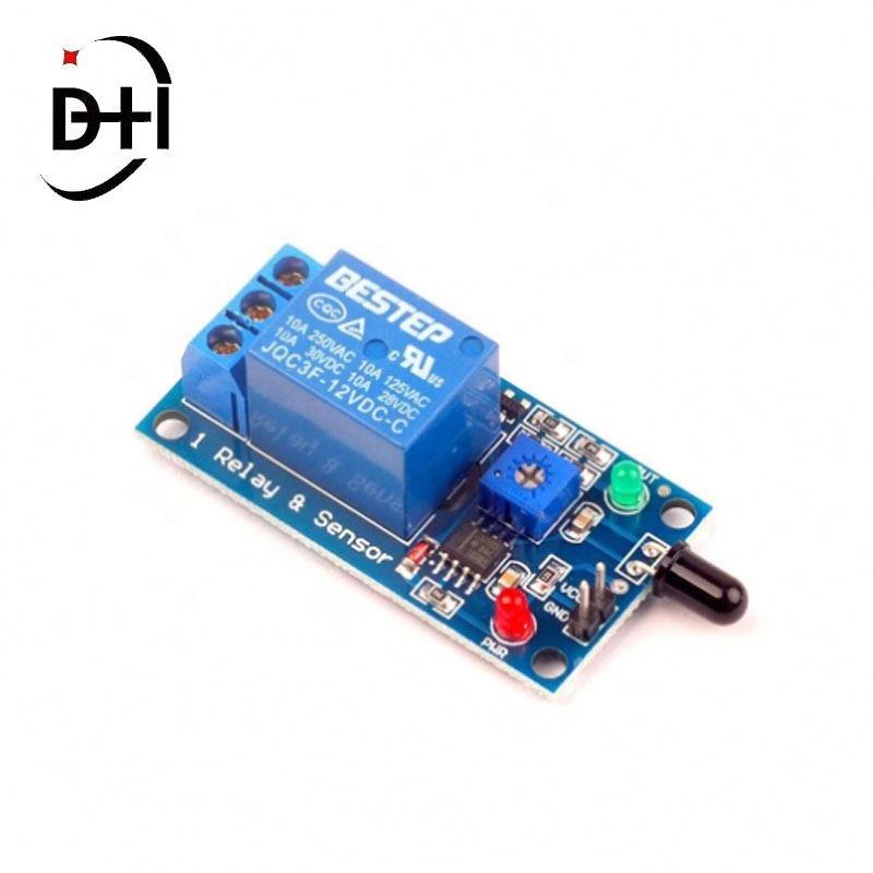 1 ช่อง 12V โมดูลเซ็นเซอร์เปลวไฟ การตรวจจับไฟไหม้ โมดูลรีเลย์เซ็นเซอร์แจ้งเตือนเหตุเพลิงไหม้