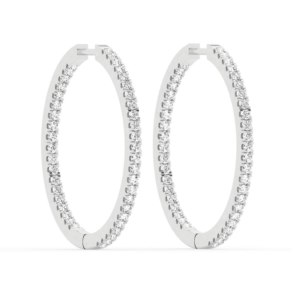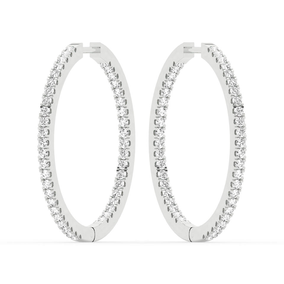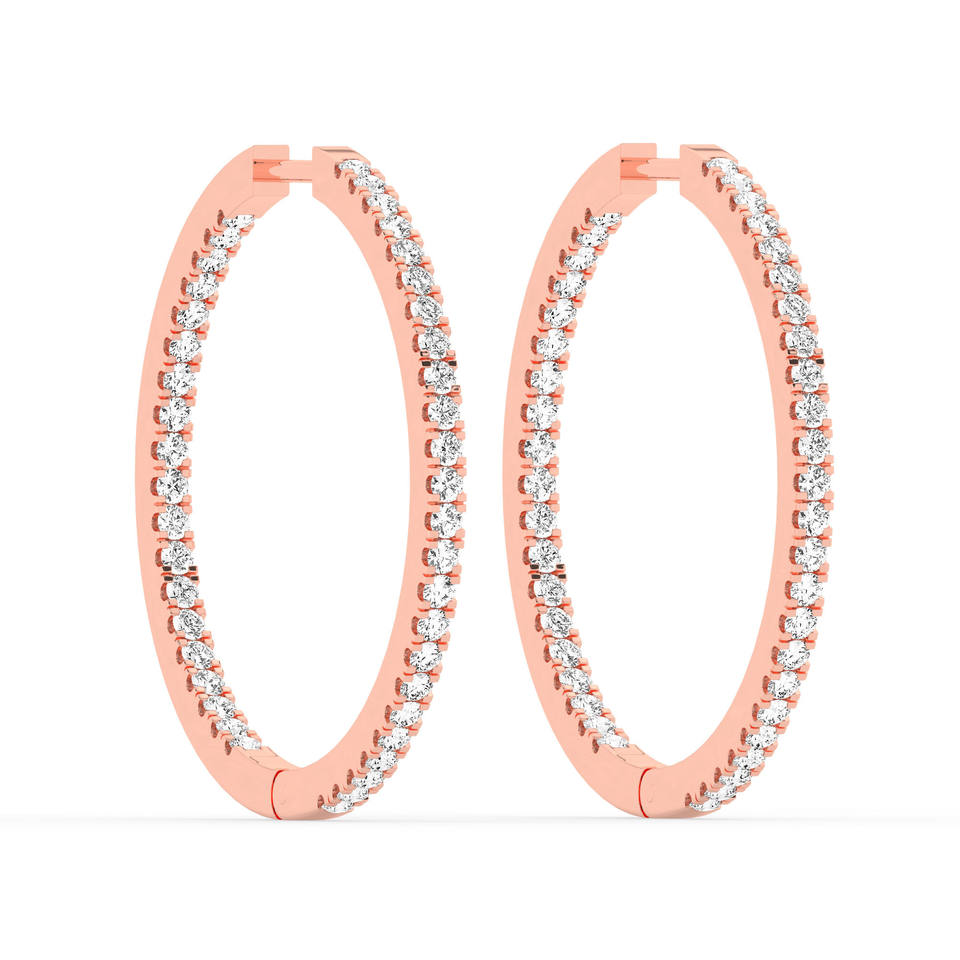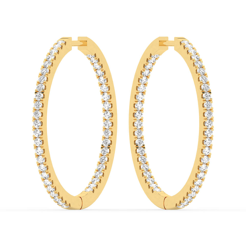 ต่างหูห่วงเพชรเพาะเลี้ยง 1 กะรัต ทรงกลมเจียระไนแบบเหลี่ยมคม ได้รับการรับรองจาก IGI ดีไซน์ทันสมัย ทองคำ 14K สีเหลือง สำหรับผู้หญิง
