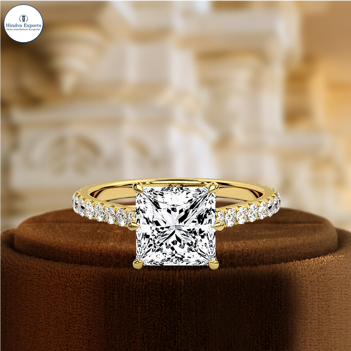 แหวนเพชรทรงเจ้าหญิง 1 กะรัต ผลิตในห้องปฏิบัติการ แบบ 6 กรงเล็บ ประดับเพชรครึ่งวง แหวนหมั้นทอง 14k แหวนขอแต่งงาน ได้รับการรับรองจาก IGI