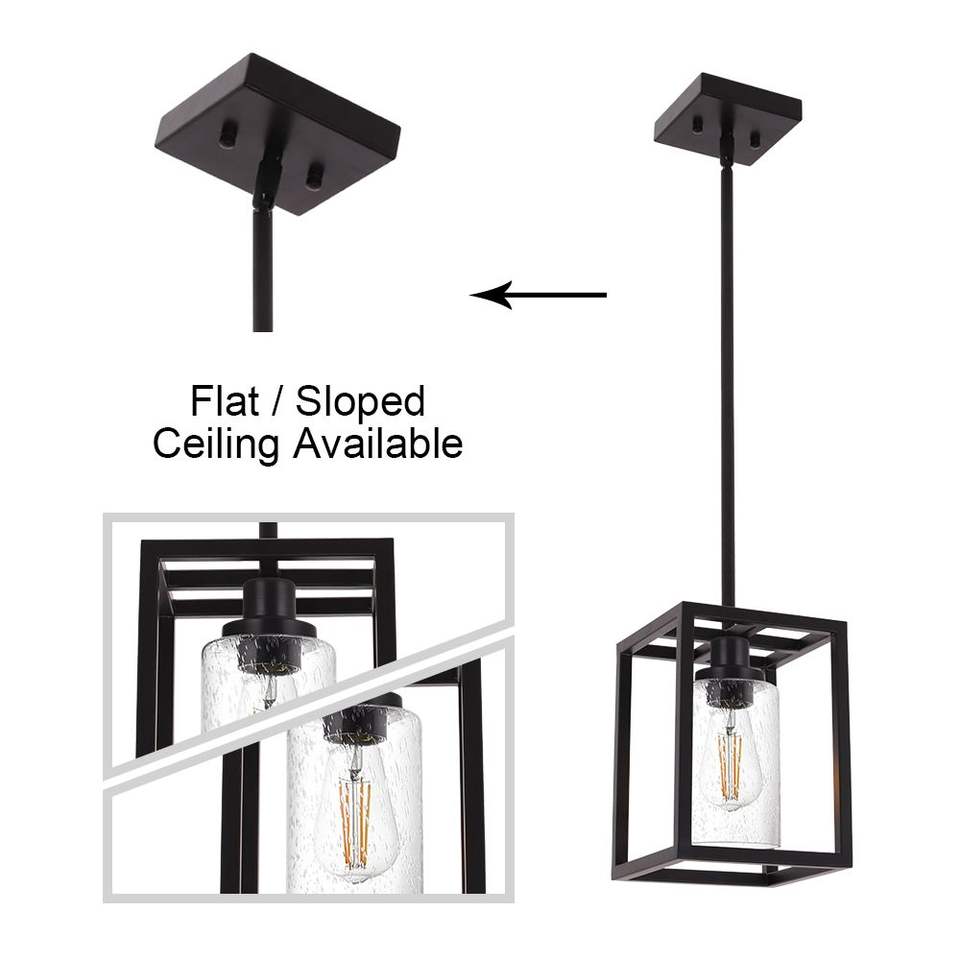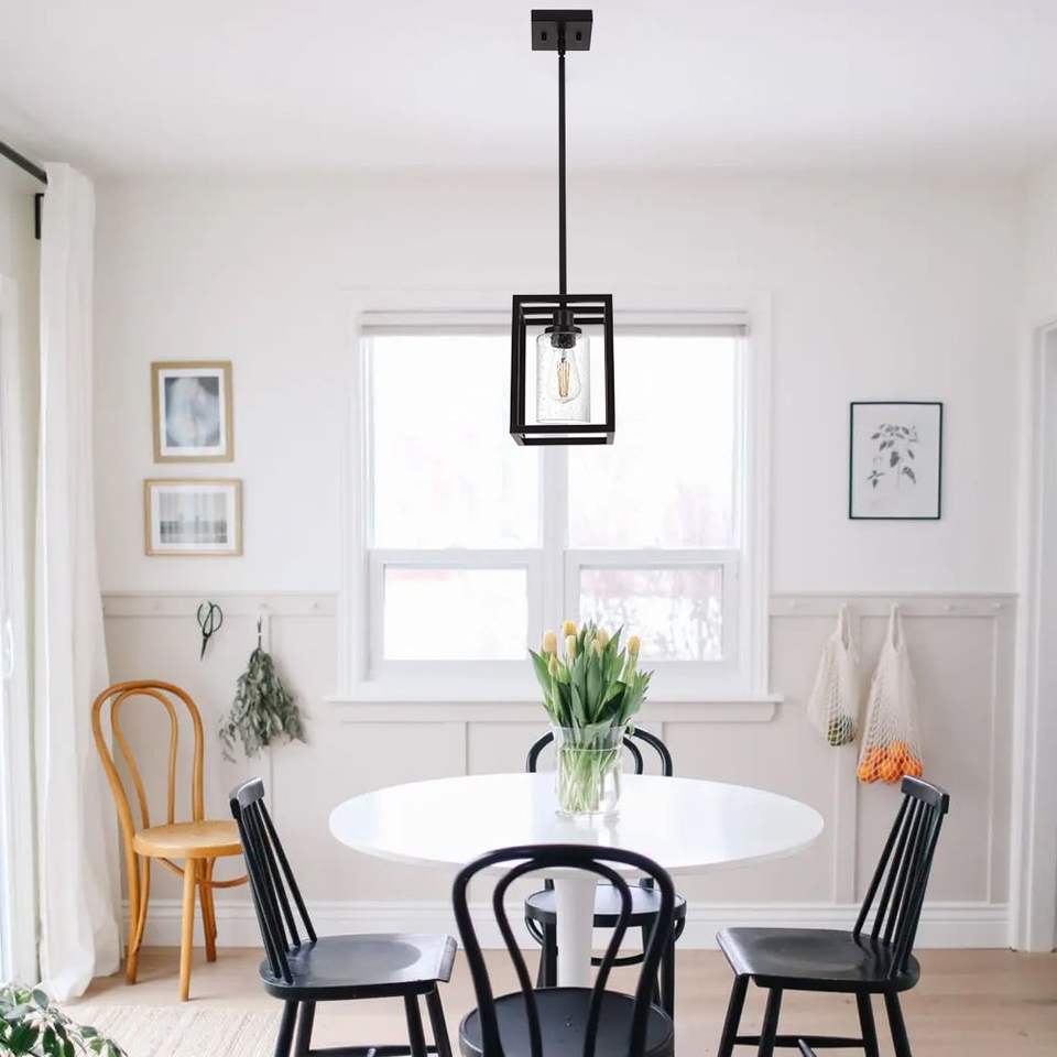 1-Light Black Seeded Glass Shade Pendant Industrial Farmhouse Mini Island Light Fixture for Dining Room Chandeliers Lights