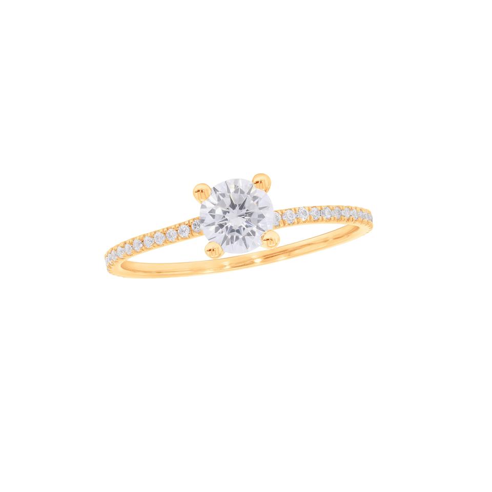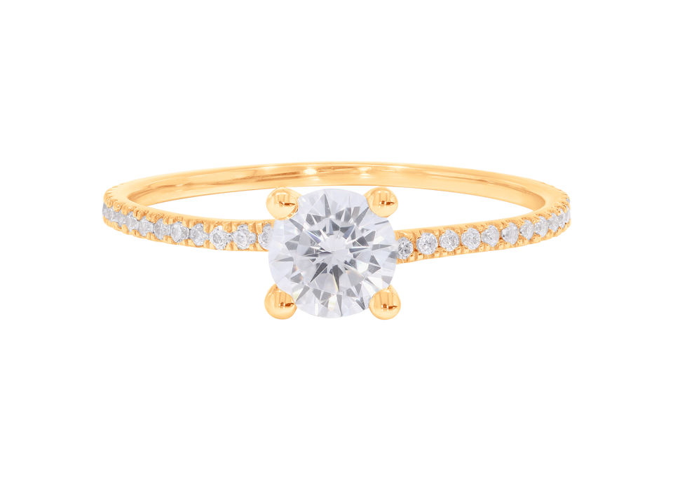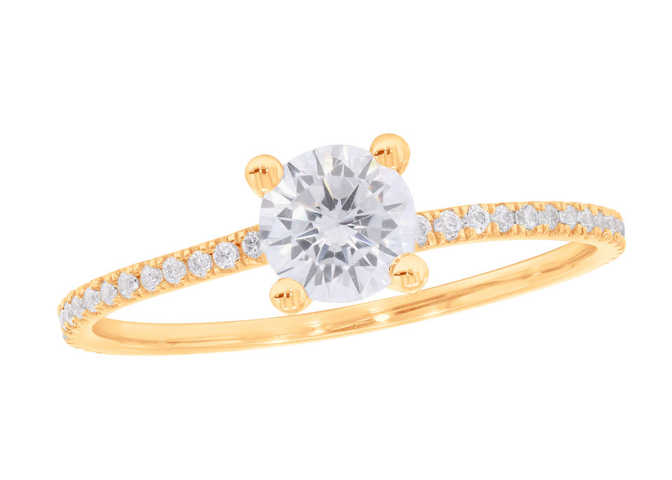 แหวนหมั้นเพชรโมอิส0.80Ct แบบโซลิแทร์สไตล์พังก์แหวนหมั้นสีเหลืองทอง