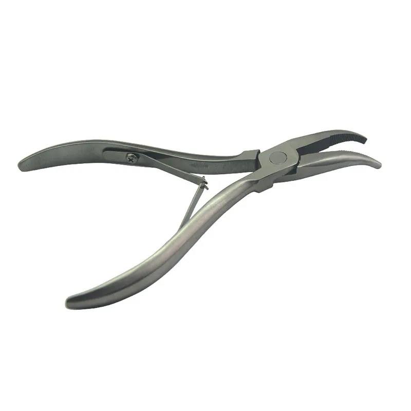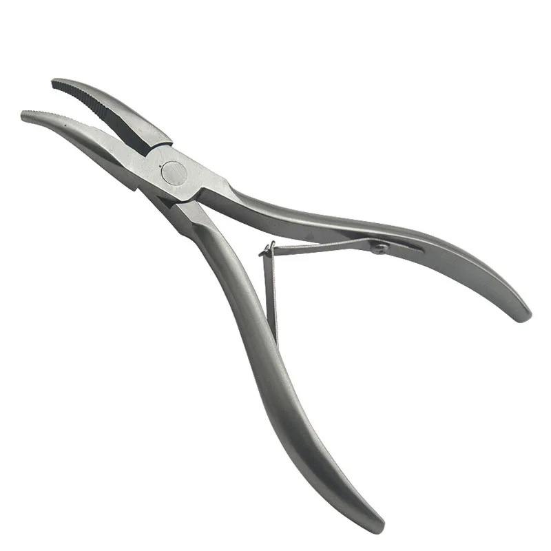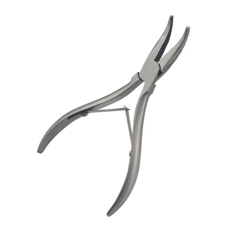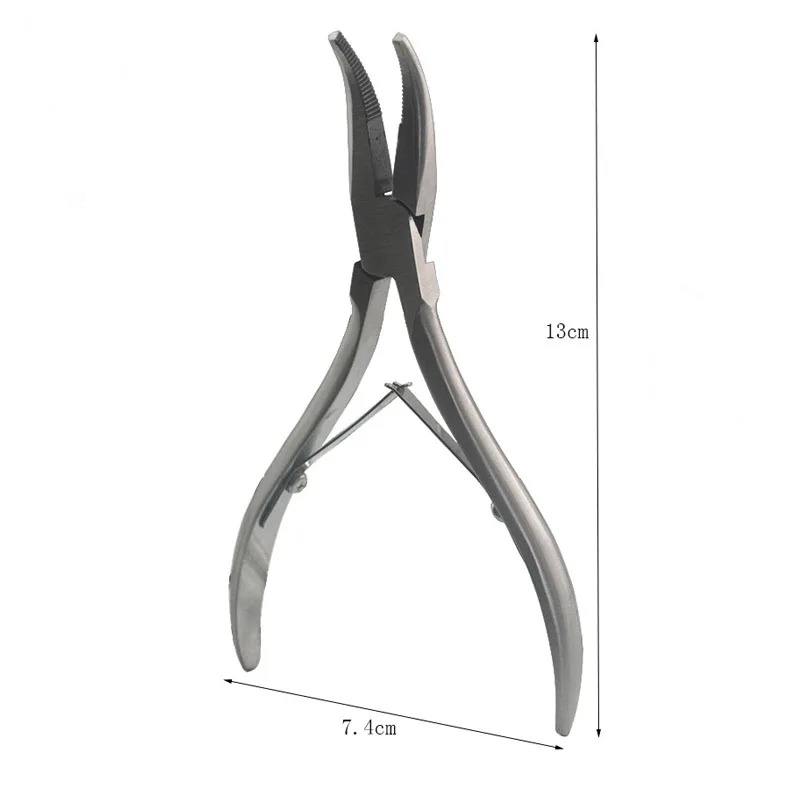 คีมปากโค้งสแตนเลสสีเงินอย่างดี ขนาด 5 นิ้ว 1 ชิ้น พร้อมคุณสมบัติปลายแคบ/กว้าง ใช้สำหรับต่อผม ใช้ในบ้าน
