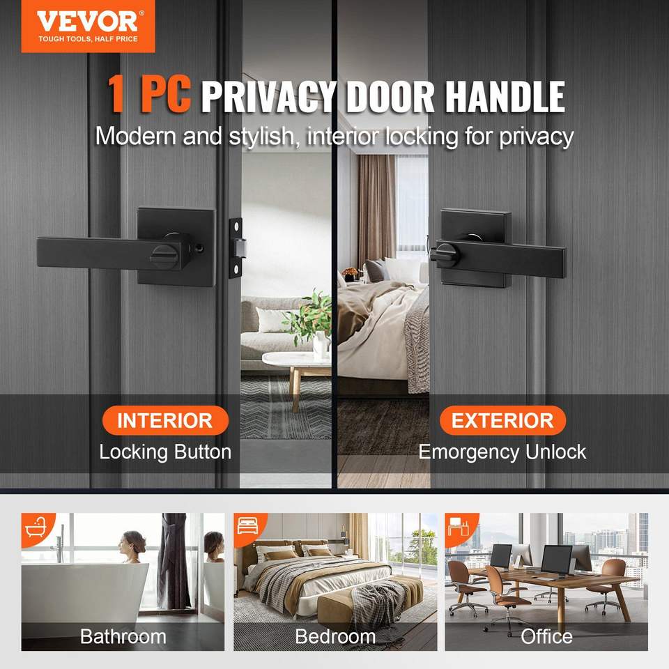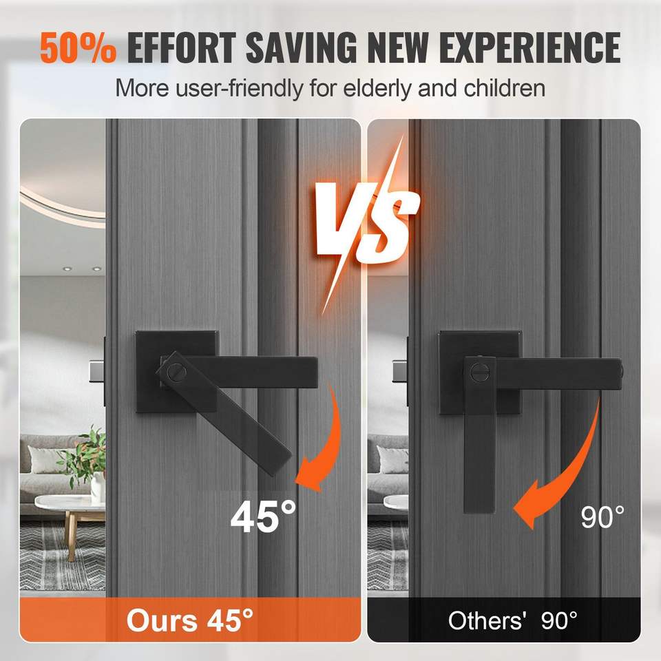 1 Pack Matte Black Privacy Door Lever Reversible Keyless Lock 45 Degrees Rotation Left & Right Handing 1 Pack