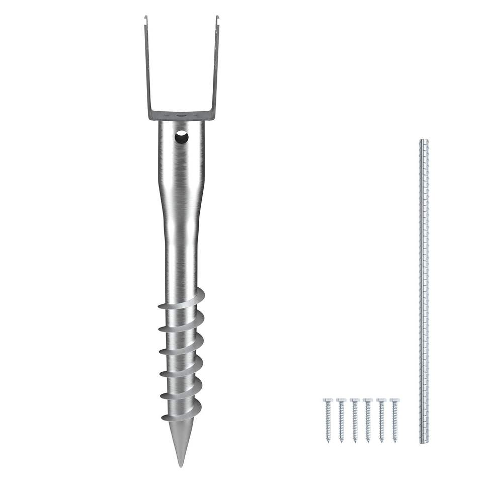 ชุดเสาเข็มยึดดินแบบไม่ต้องขุดเจาะ 1 ชุด ขนาด 3.94 x 2.76 x 27.56 นิ้ว รูปตัวยู สำหรับงานหนัก พร้อมสลักเกลียว 6 ตัว สำหรับยึดเหล็กเส้น รวมอุปกรณ์ไม่ต้องขุดเจาะ