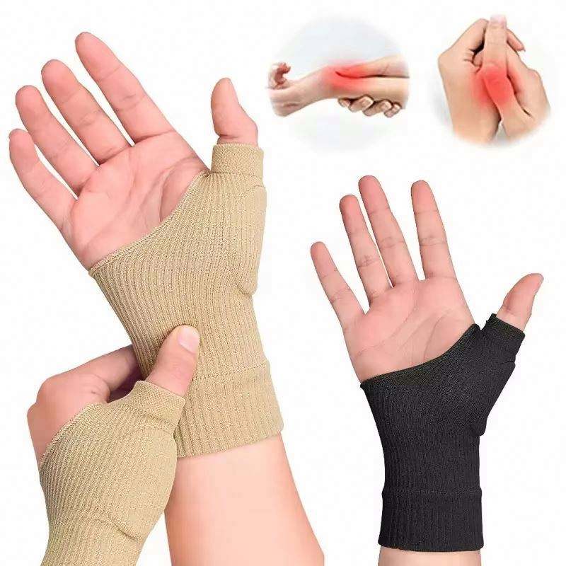 ถุงมือพยุงข้อมือแบบมีแม่เหล็ก 1 คู่ ผ้าสแปนเด็กซ์ระบายอากาศได้ดี พร้อมแผ่นเจลรองนิ้วหัวแม่มือ สำหรับอาการบาดเจ็บ บรรเทาอาการปวดข้อมือจากโรคข้ออักเสบ