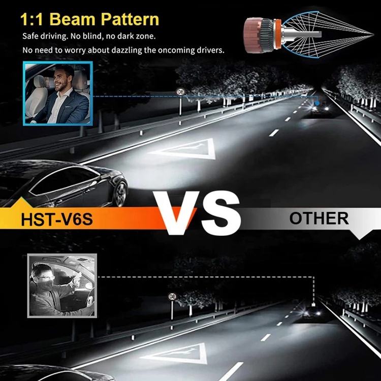 Hussun หลอดไฟ LED ทรงพลัง V6S 9005,ไฟหน้ารถยนต์ Led Hb3 H11 9006 H7 H1จำนวน1คู่