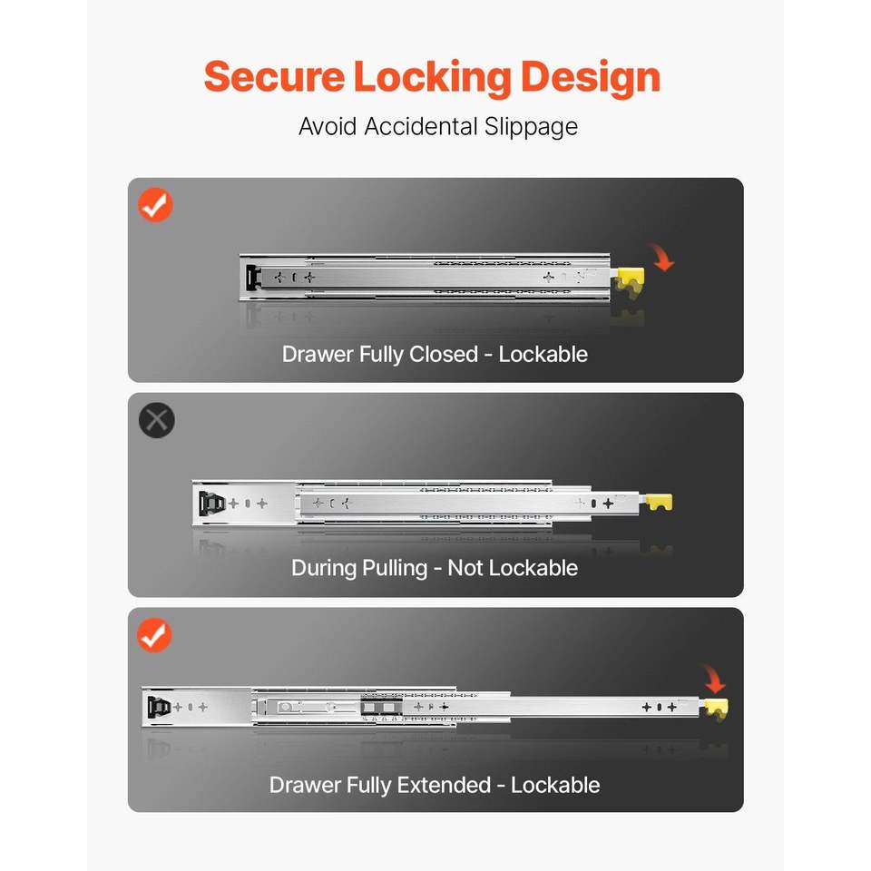 รางเลื่อนแบบเต็มขนาด16-60นิ้วสำหรับลิ้นชัก1คู่