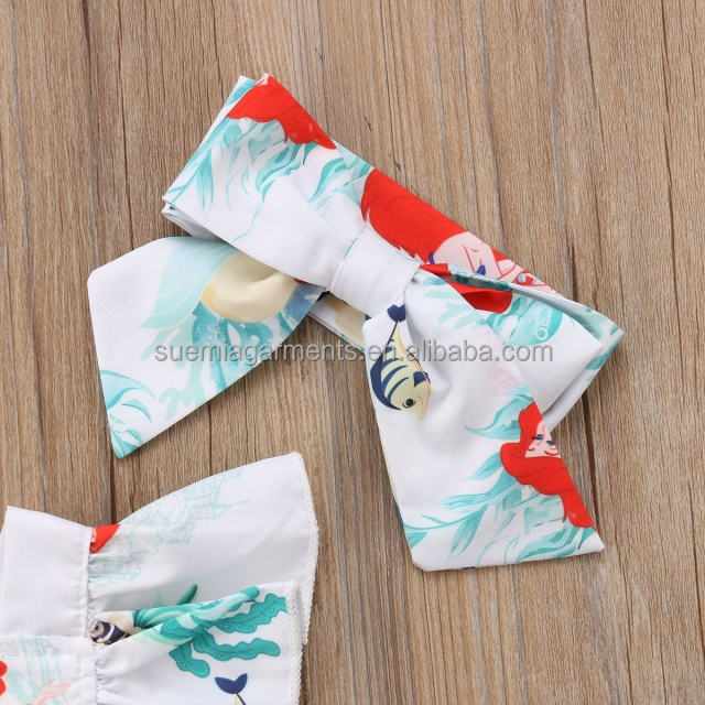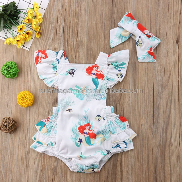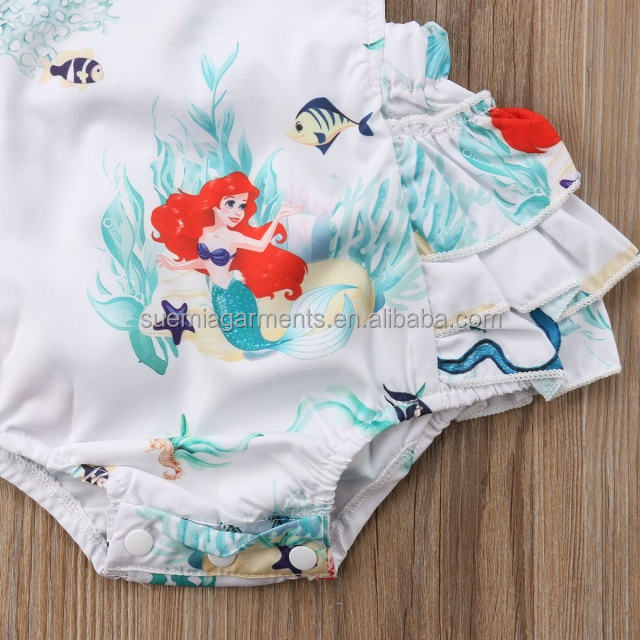 ชุดรอมเปอร์โพลีเอสเตอร์ลายนางเงือกสำหรับเด็กทารกชุดบอดี้สูทเด็กวัยหัดเดิน1ชิ้นป้ายแบบสั่งทำ
