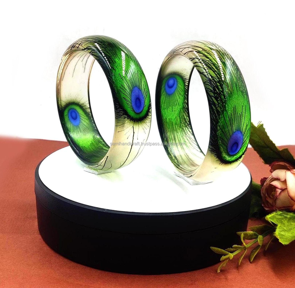กำไลข้อมือเรซินย้อนยุคลายขนนกยูงสุดพิเศษ1ชิ้น
