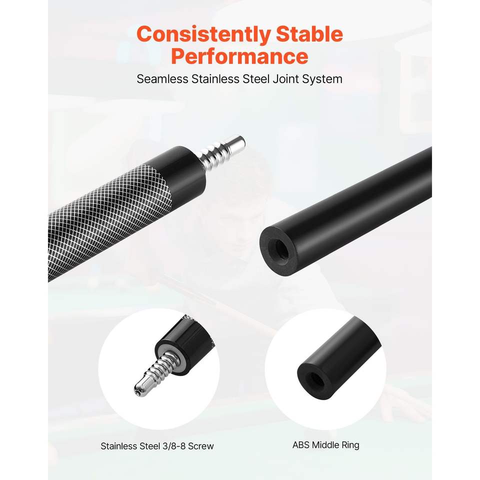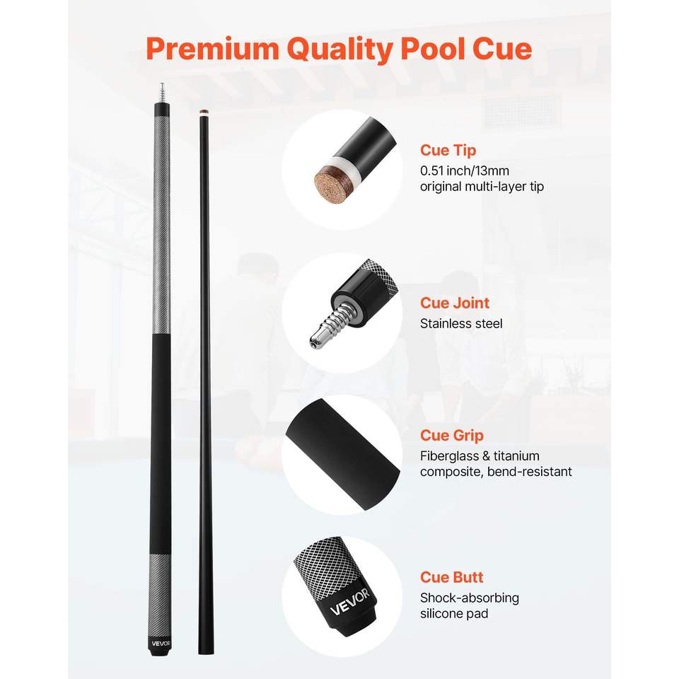 ไม้คิวพูล 1 ชิ้น ขนาด 58 นิ้ว น้ำหนัก 21 ออนซ์ ทำจากไฟเบอร์กลาสผสมไทเทเนียม พร้อมหัวคิวหลายชั้น สำหรับสนุกเกอร์และบิลเลียด