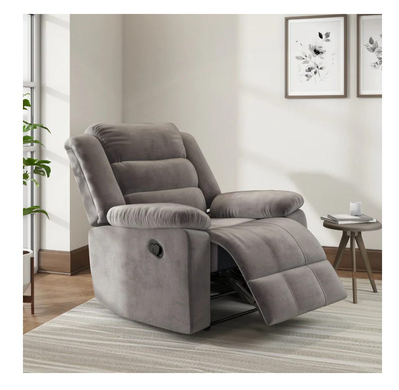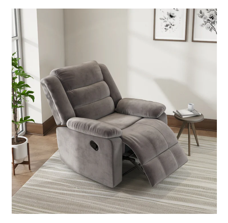 โซฟาปรับเอนได้แบบแมนนวล1ที่นั่งดีไซน์ทันสมัยเป็นมิตรกับสิ่งแวดล้อมปรับเอนนอนกำมะหยี่เดี่ยวในกรอบไม้สีน้ำตาล